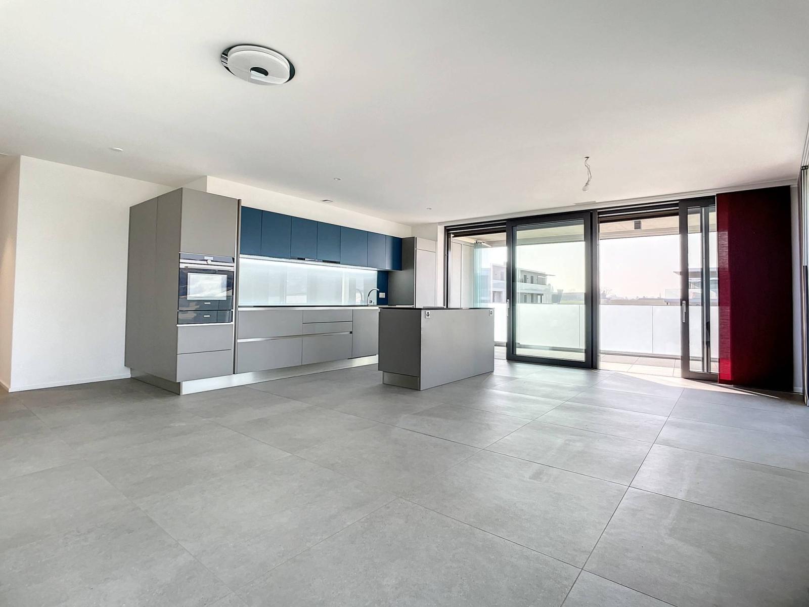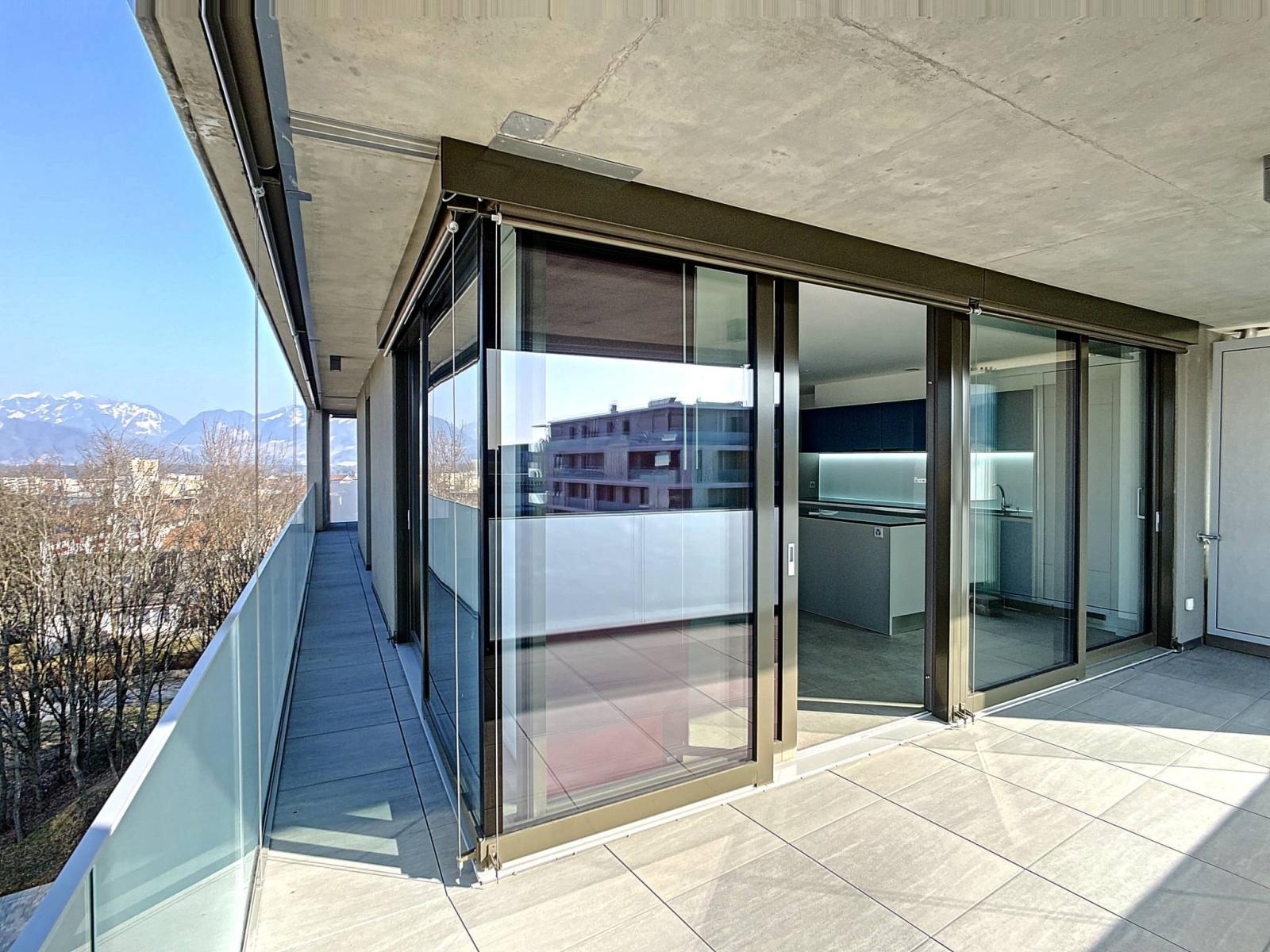 Entdecken Sie in einer ruhigen Gegend diese schöne 4,5-Zimmer-Wohnung „wie neu und leicht bewohnt“ mit einer Wohnfläche von 107 m², ergänzt durch einen Balkon von 35 m², wodurch sich die gewichtete Wohnfläche auf 124 m² beläuft.