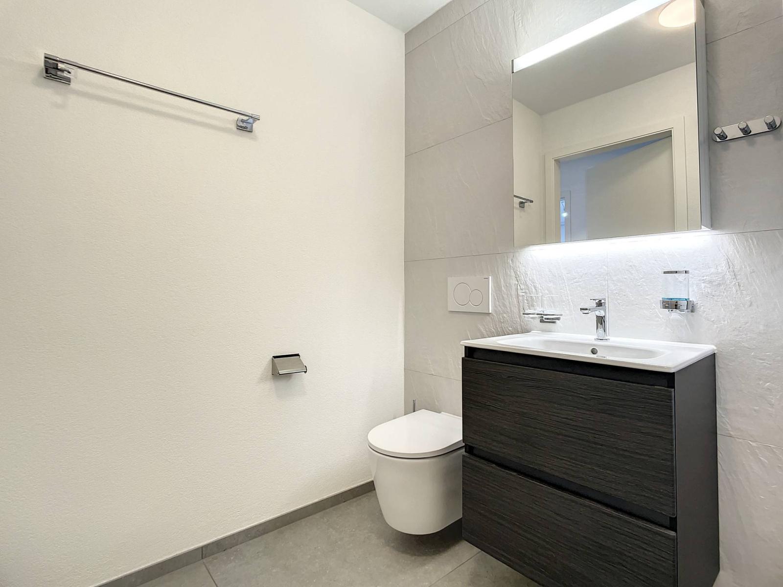Eine Garagenbox mit automatischem Tor sowie ein Keller vervollständigen diese Immobilie.
