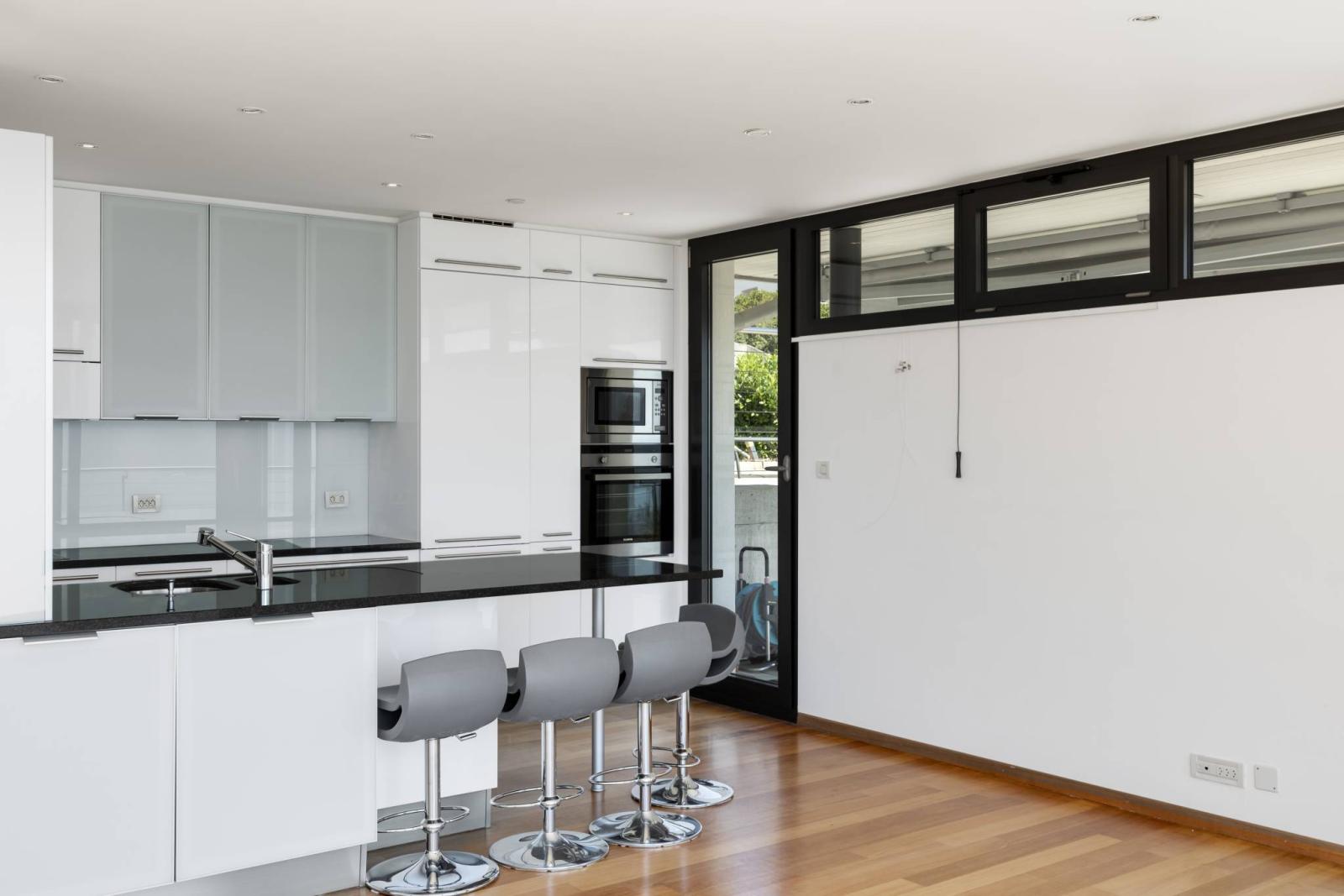 Es verfügt insbesondere über eine schöne Küche, die zum Wohnzimmer mit Kamin hin offen ist, 4 Schlafzimmer und 4 Badezimmer. Eine große Doppelgarage und eine dritte Garage vervollständigen diese Immobilie.