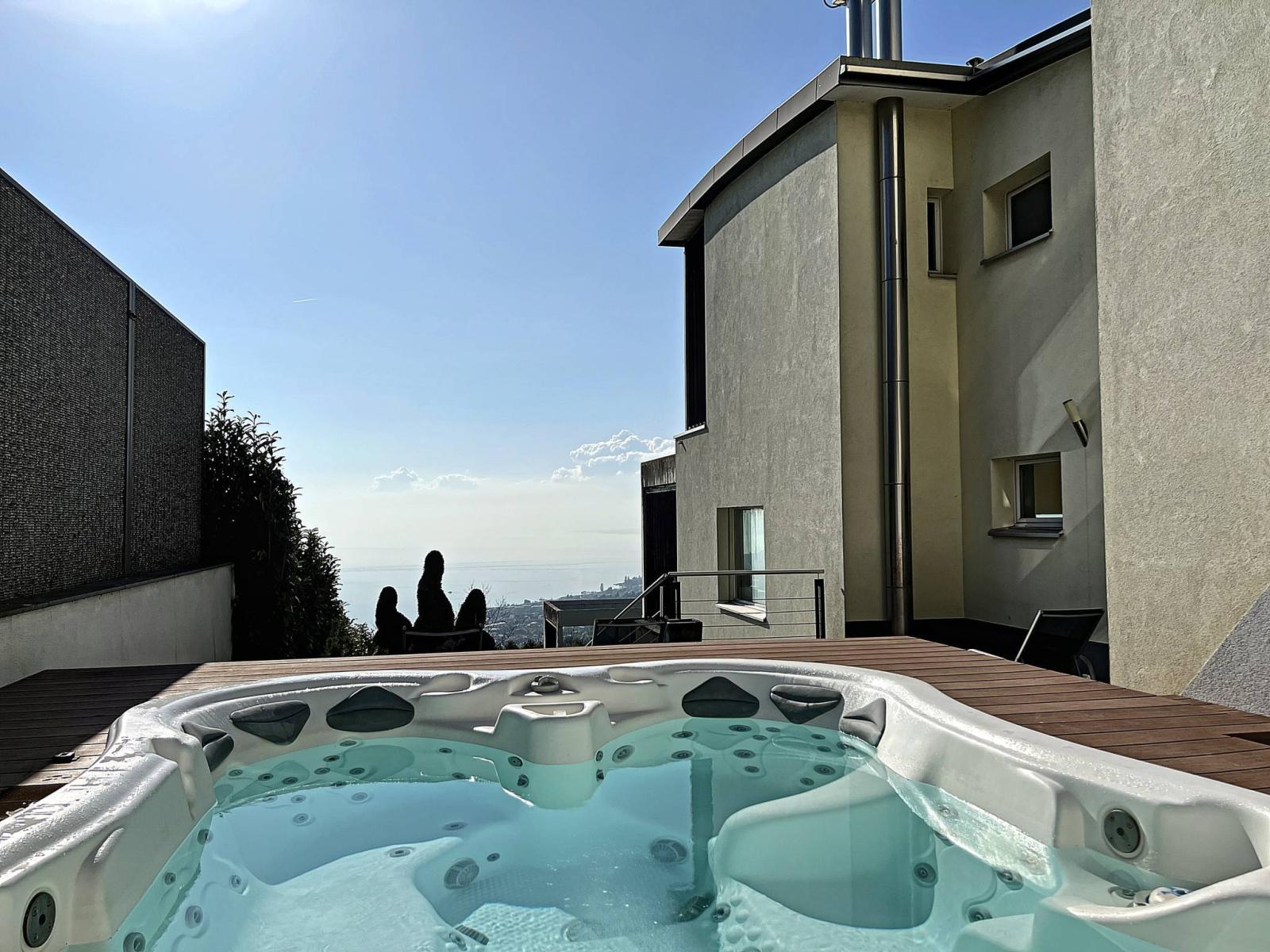 Die Residenz „Les Perles du Lac“ liegt im Herzen von Lavaux, auf den Höhen der Stadt Lutry und besteht aus 6 Doppelvillen, die eine sichere, familiäre Umgebung genießen. In der Nähe von öffentlichen Verkehrsmitteln, Schulen und Autobahnen profitiert diese Giebelvilla von einer dominanten Lage und bietet einen atemberaubenden Blick auf den Genfersee. Es liegt an einer Privatstraße und bietet eine warme Atmosphäre, ideal für eine Familie.