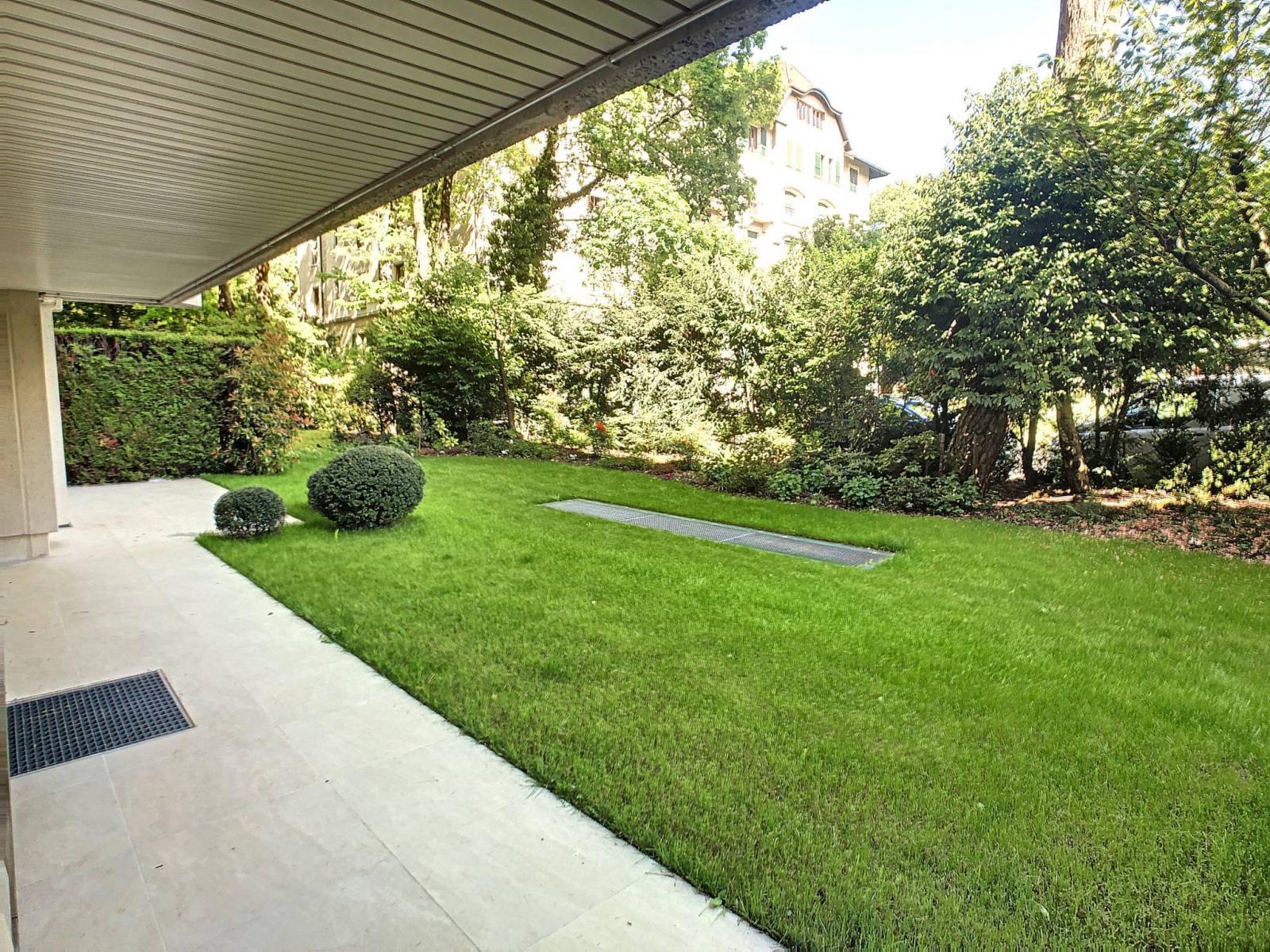 Diese schöne 6-Zimmer-Wohnung mit einer PSA-gewichteten Fläche von 208 m² befindet sich auf der Gartenebene eines Luxusgebäudes, ideal im Herzen von Champel und in der Nähe aller Annehmlichkeiten.