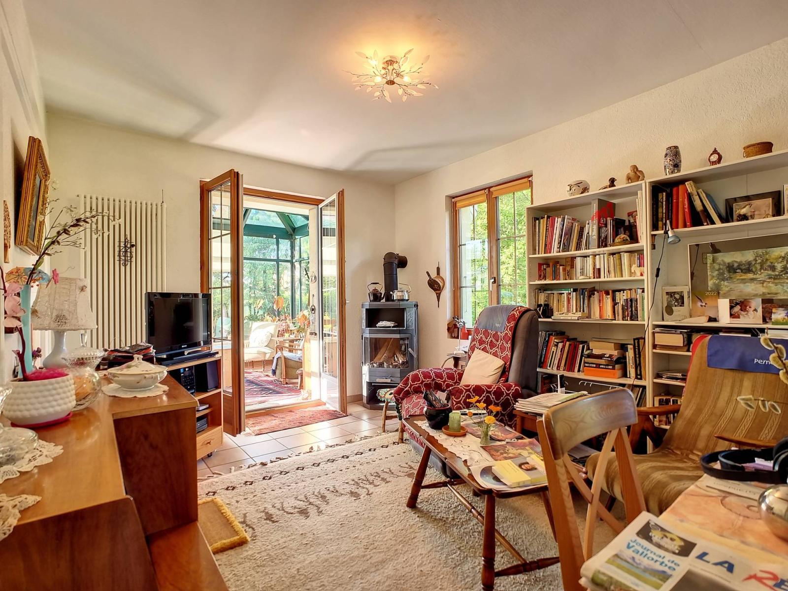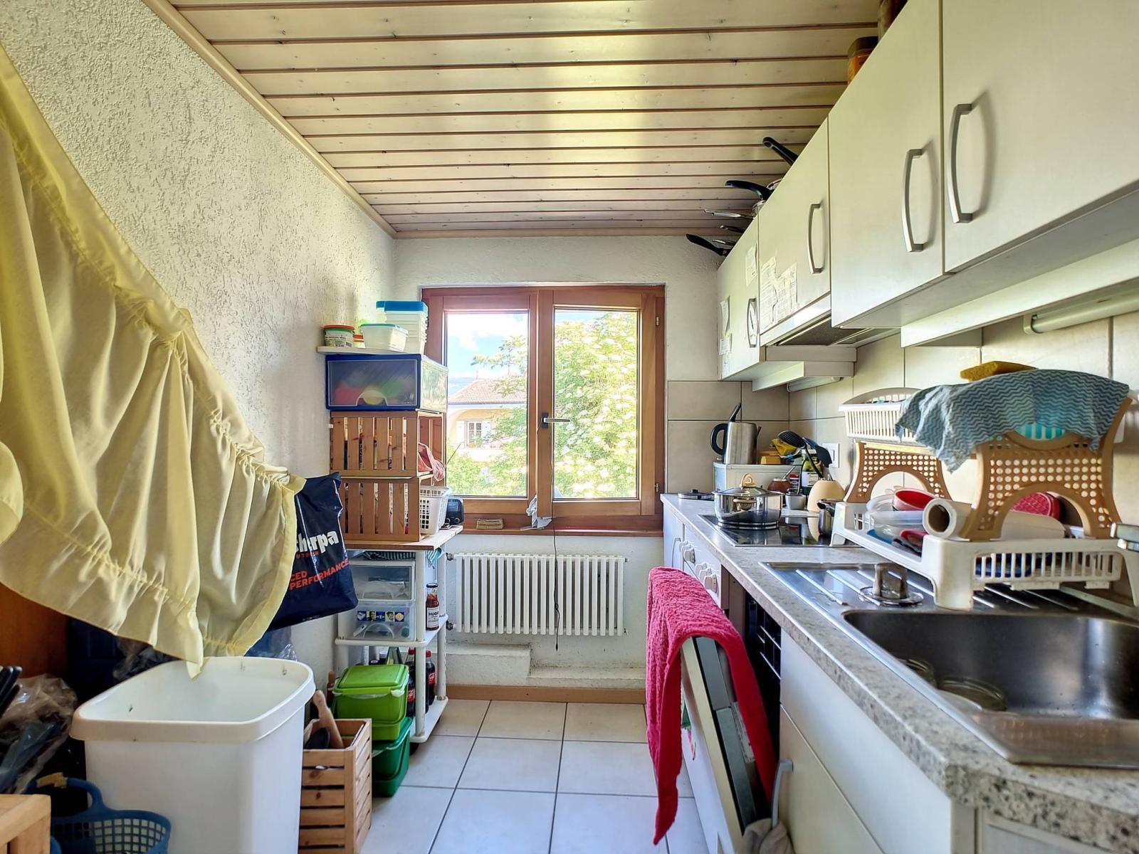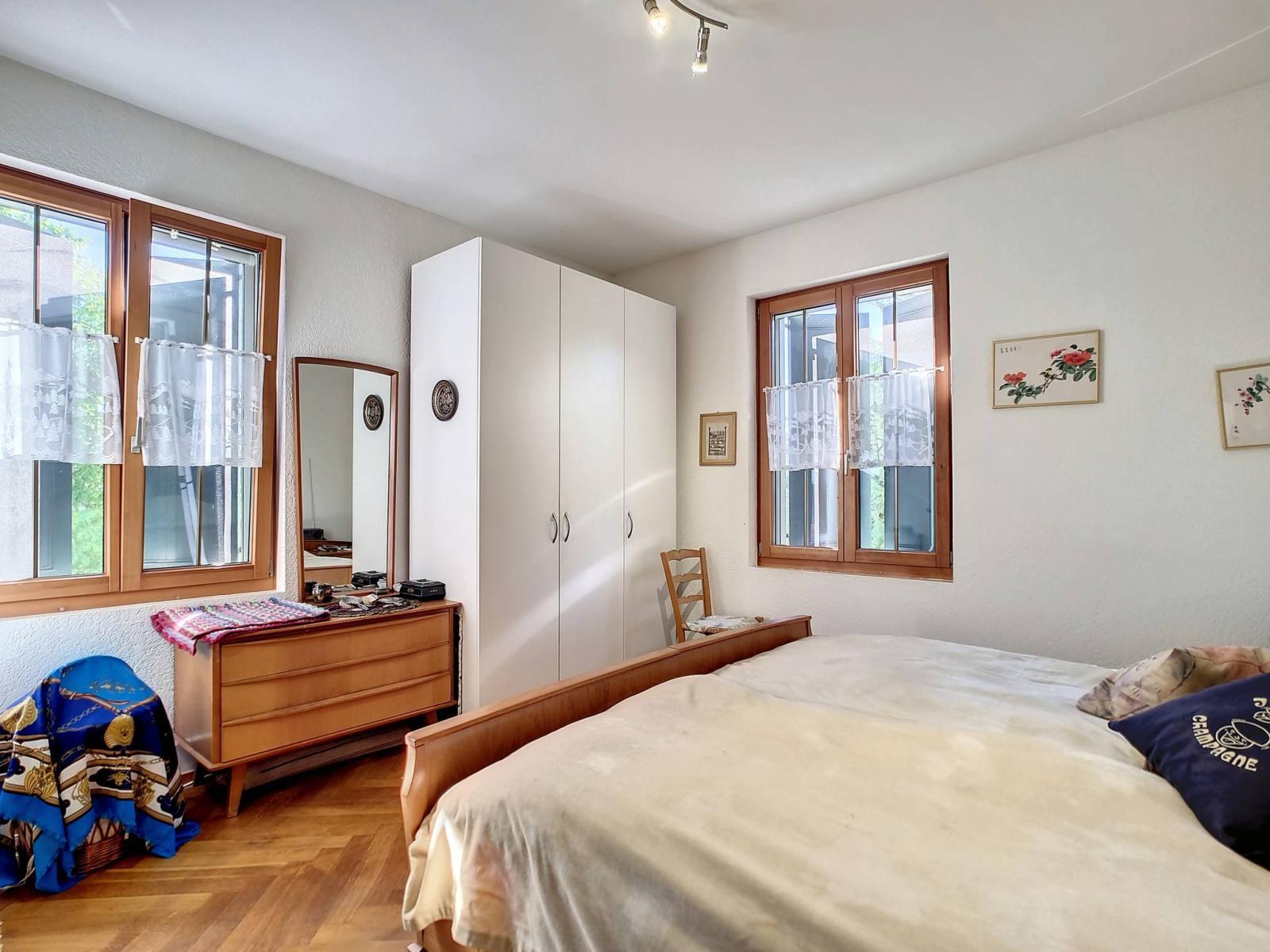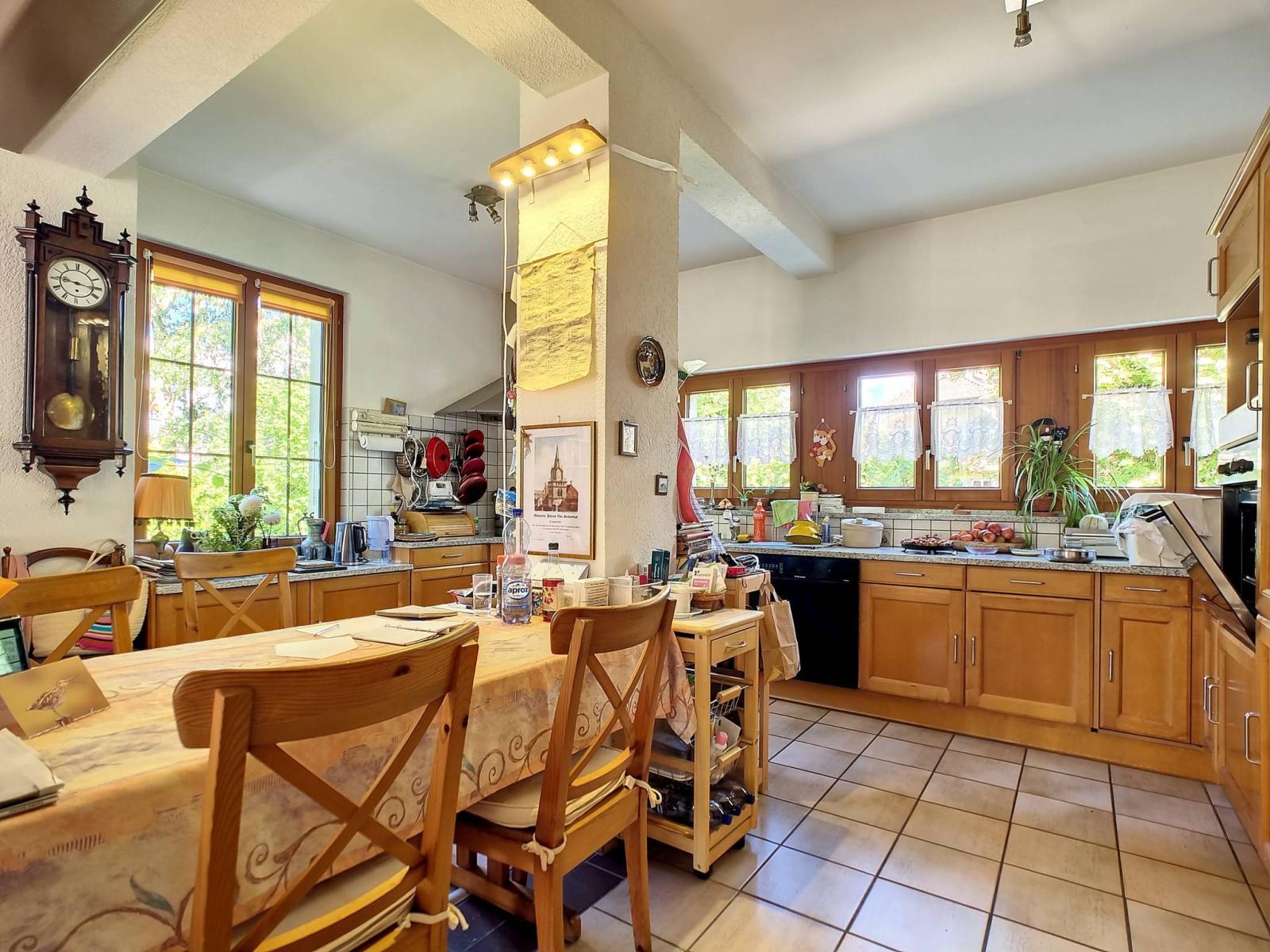 Das Haus ist derzeit in zwei Wohnungen aufgeteilt, jeweils eine 4,5-Zimmer-Wohnung mit Veranda im Erdgeschoss und eine 3-Zimmer-Wohnung im Dachgeschoss, könnte aber problemlos zu einer einzigen großen Unterkunft zusammengefasst werden. Der Keller umfasst den Technikraum, Keller, eine Garage-Werkstatt und die gemeinsame Waschküche.