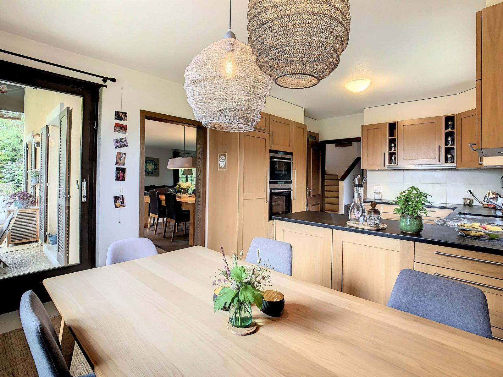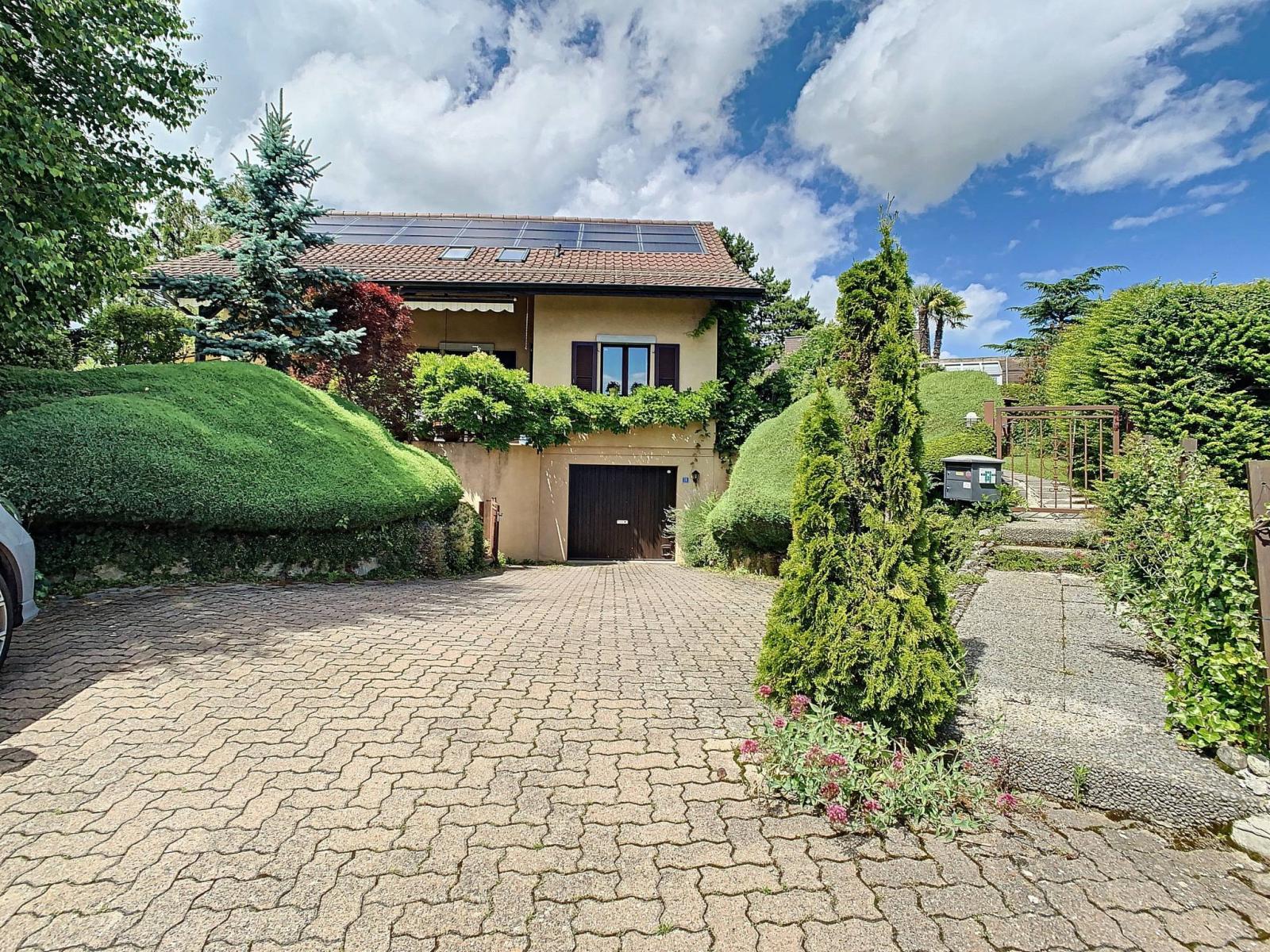 Diese 1983 erbaute Villa mit 180 m² Wohnfläche (270 m² Nutzfläche) wurde gut gepflegt und hat im Laufe der Jahre von Renovierungen/Verbesserungen profitiert. (Kessel durch eine Erdwärmesonde ersetzt, Küche, Badezimmer erneuert, etc...)