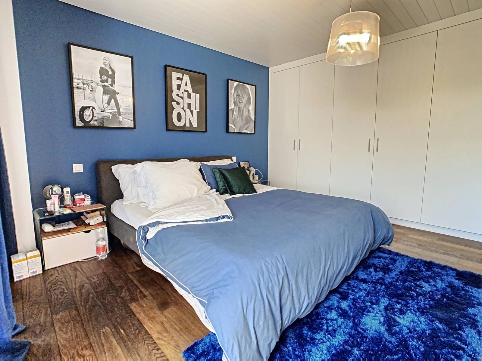 2 Schlafzimmer mit Garderobe, ein Duschbad und eine angenehme Master-Suite mit Kleiderschränken, Badezimmer (Badewanne + Dusche) und Terrasse befinden sich im 1. Stock.