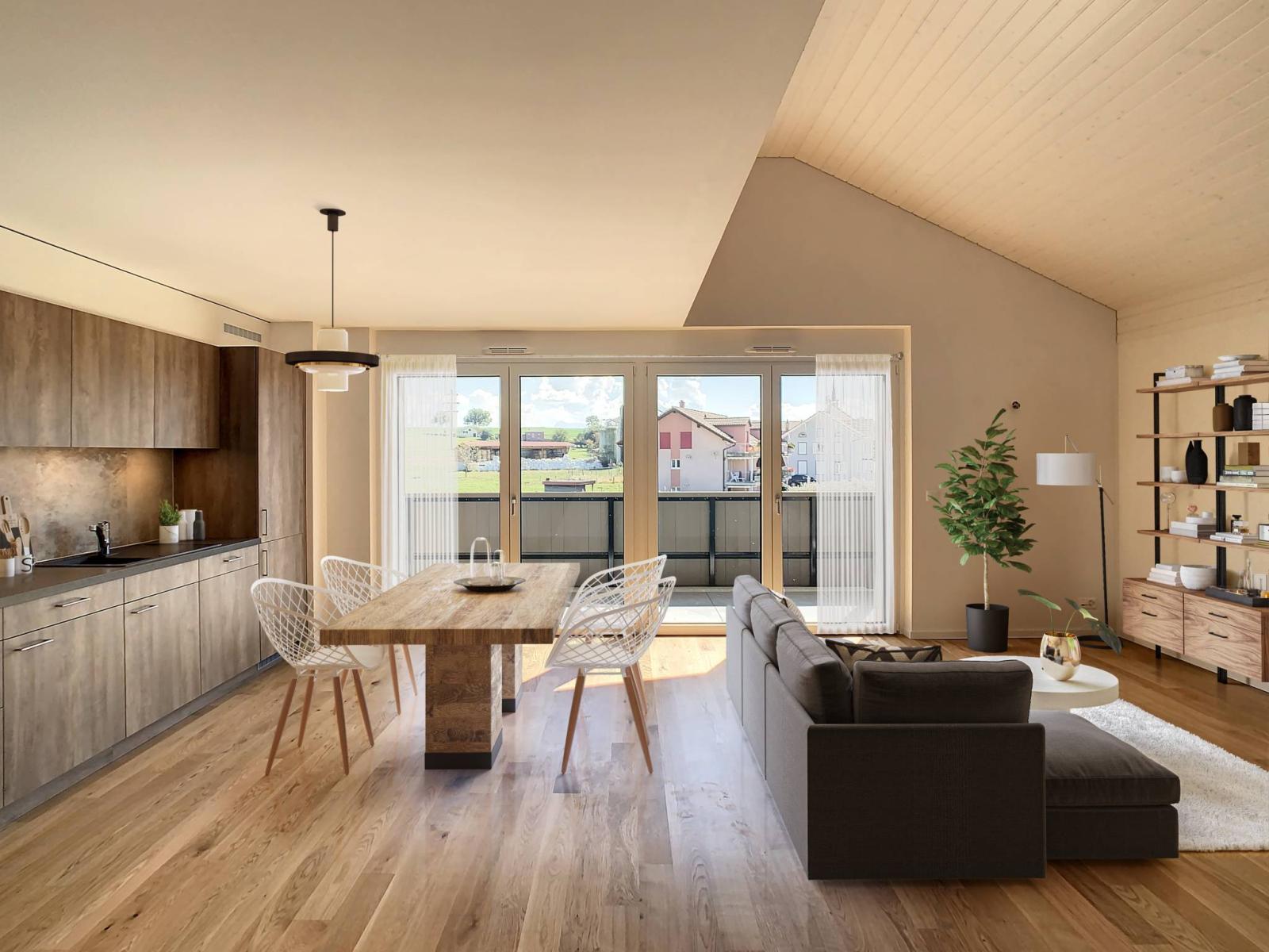 Ideal gelegen zwischen Freiburg und Payerne verfügt diese neue 3,5-Zimmer-Wohnung genau im Dorf Middes über eine Wohnfläche von 103 m² und einen Balkon von 14 m², was einer gewichteten Wohnfläche von ca. 110 m² entspricht. Es bietet ein idyllisches Wohnumfeld, das die Nähe zu den beiden Städten vereint und gleichzeitig von einer grünen Umgebung am Rande eines landwirtschaftlich genutzten Gebiets profitiert.
