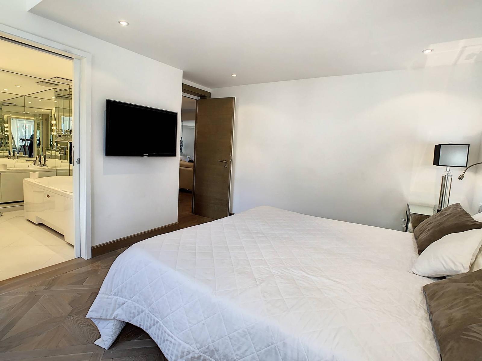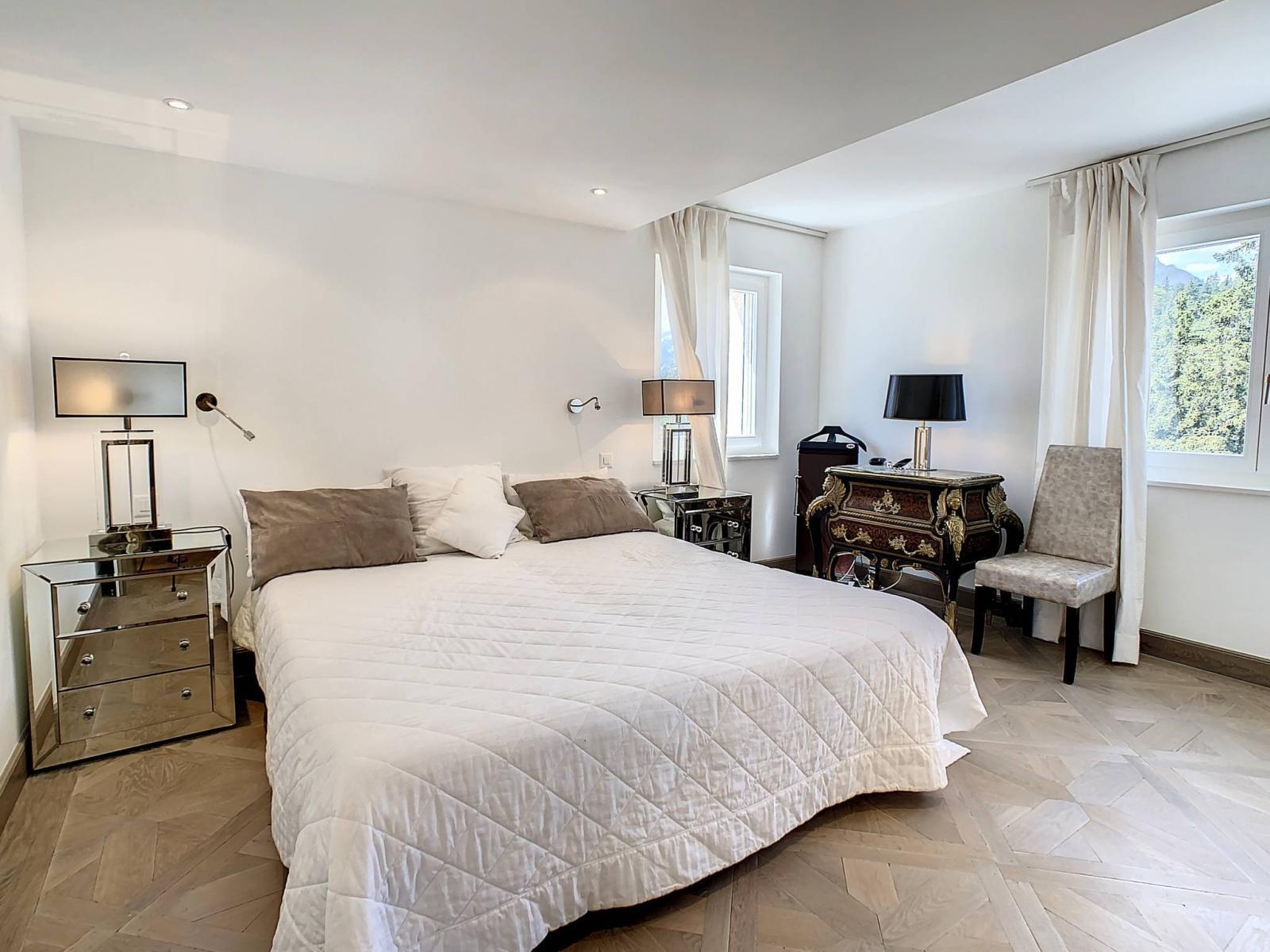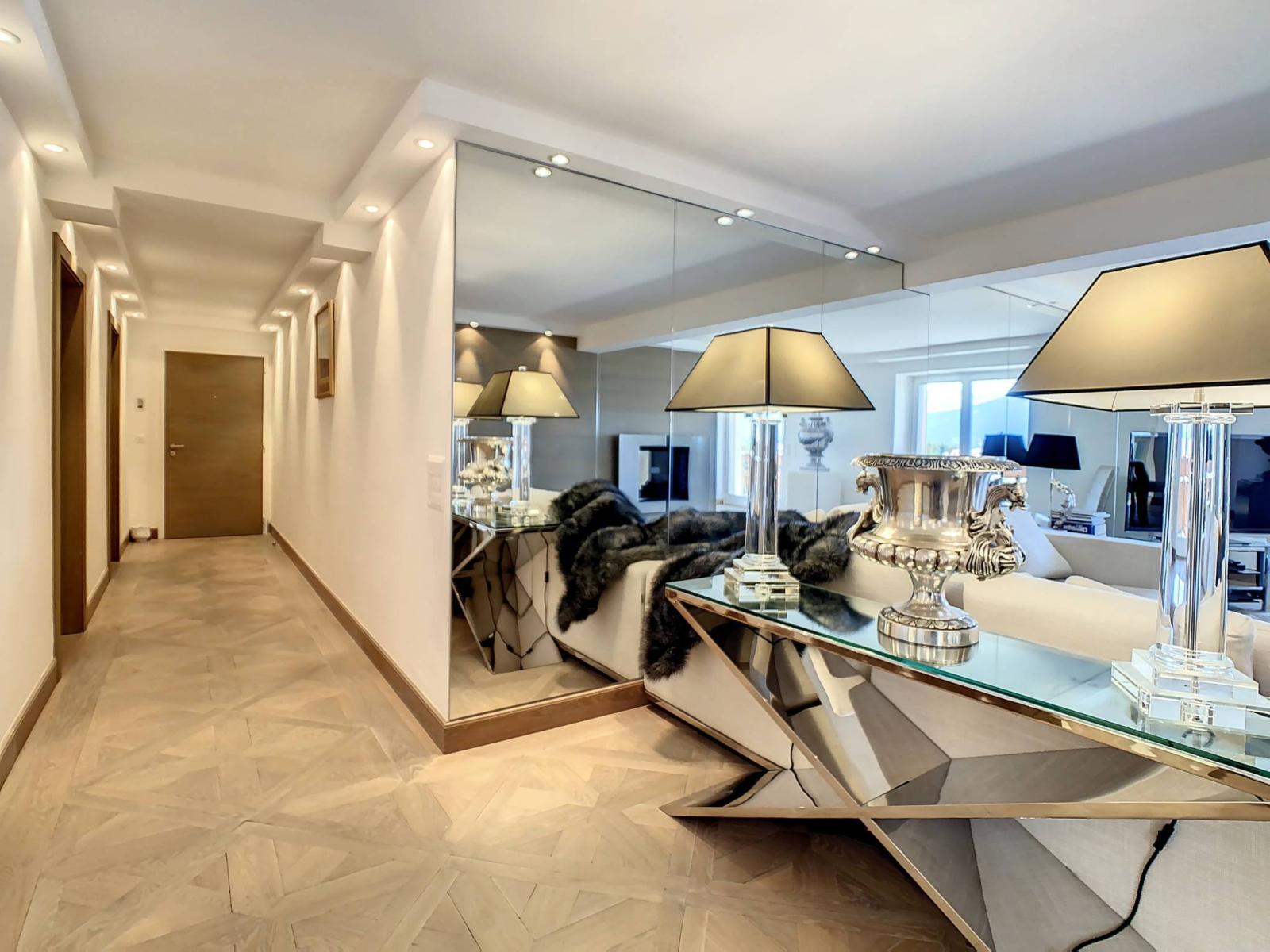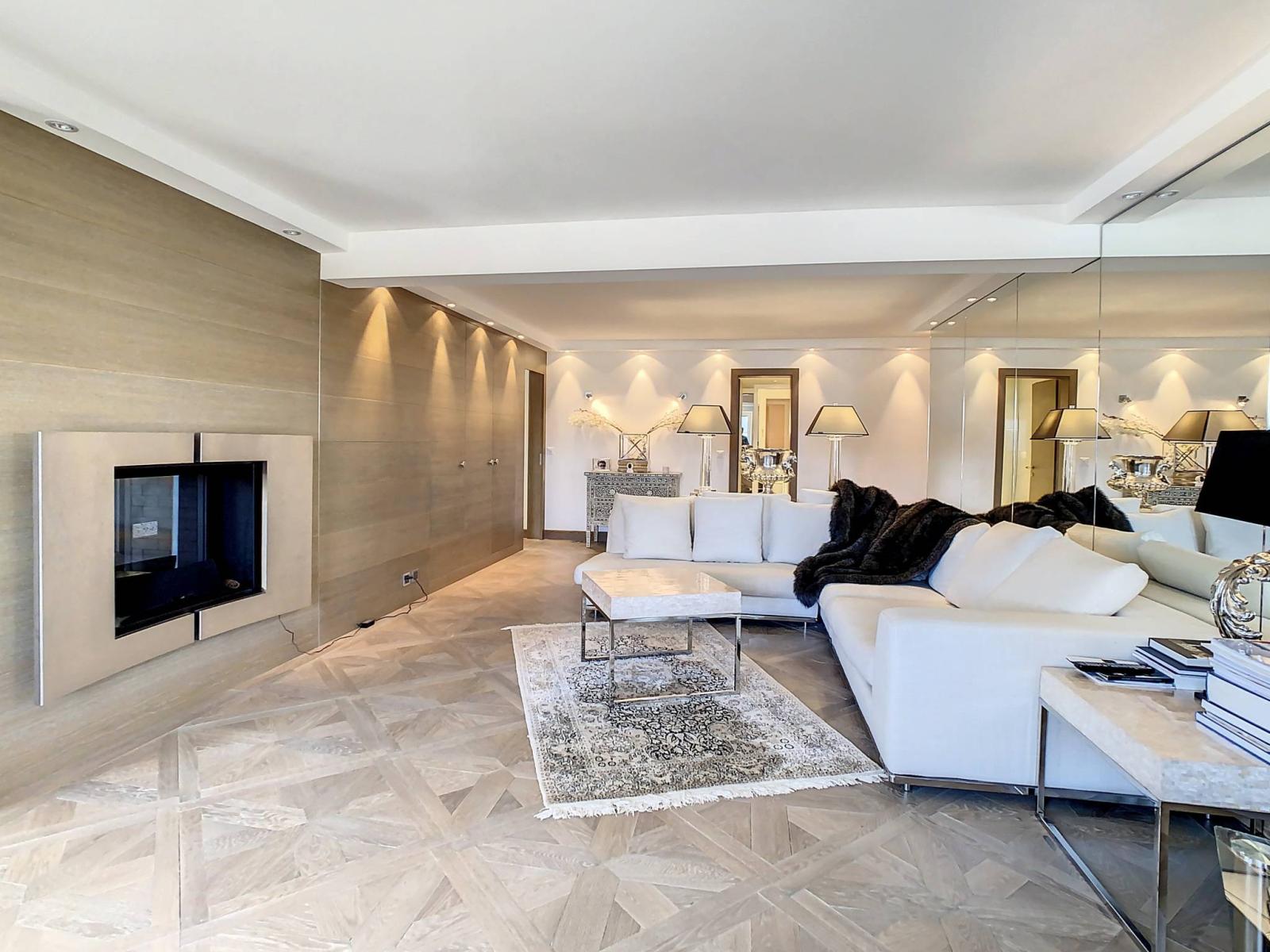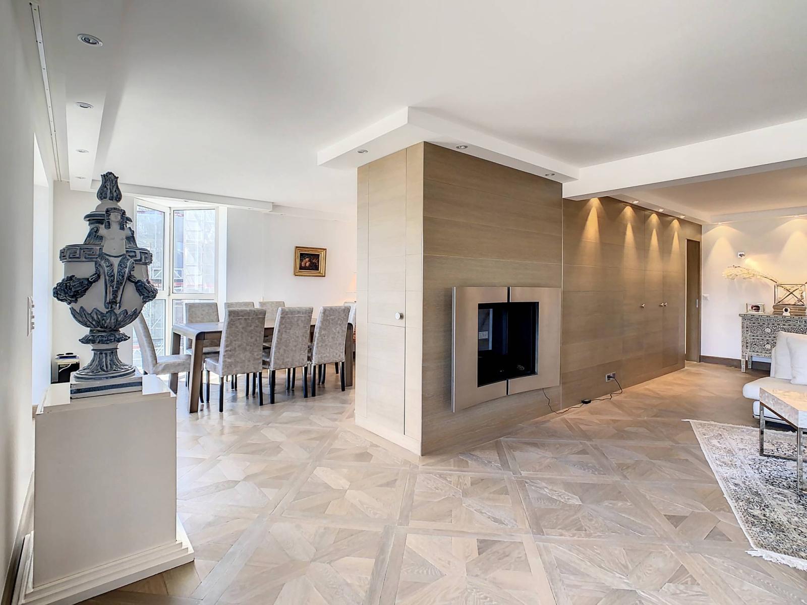 Mit einer gewichteten Fläche von 150 m², davon 140 m² Wohnfläche und 20 m² Terrasse, ist diese Eck- und Kreuzungswohnung mit schönen Räumen mit hochwertigen Materialien und Installationen ausgestattet. Insbesondere ein Audiosystem in allen Zimmern, zwei Badezimmer mit Hydromassage-Badewanne und Wellnessdusche, ein großes Wohnzimmer mit Doppelkamin. Der authentische Parkettboden wurde aus alten Böden hergestellt und bringt Charme und eine gemütliche Atmosphäre mit sich.
