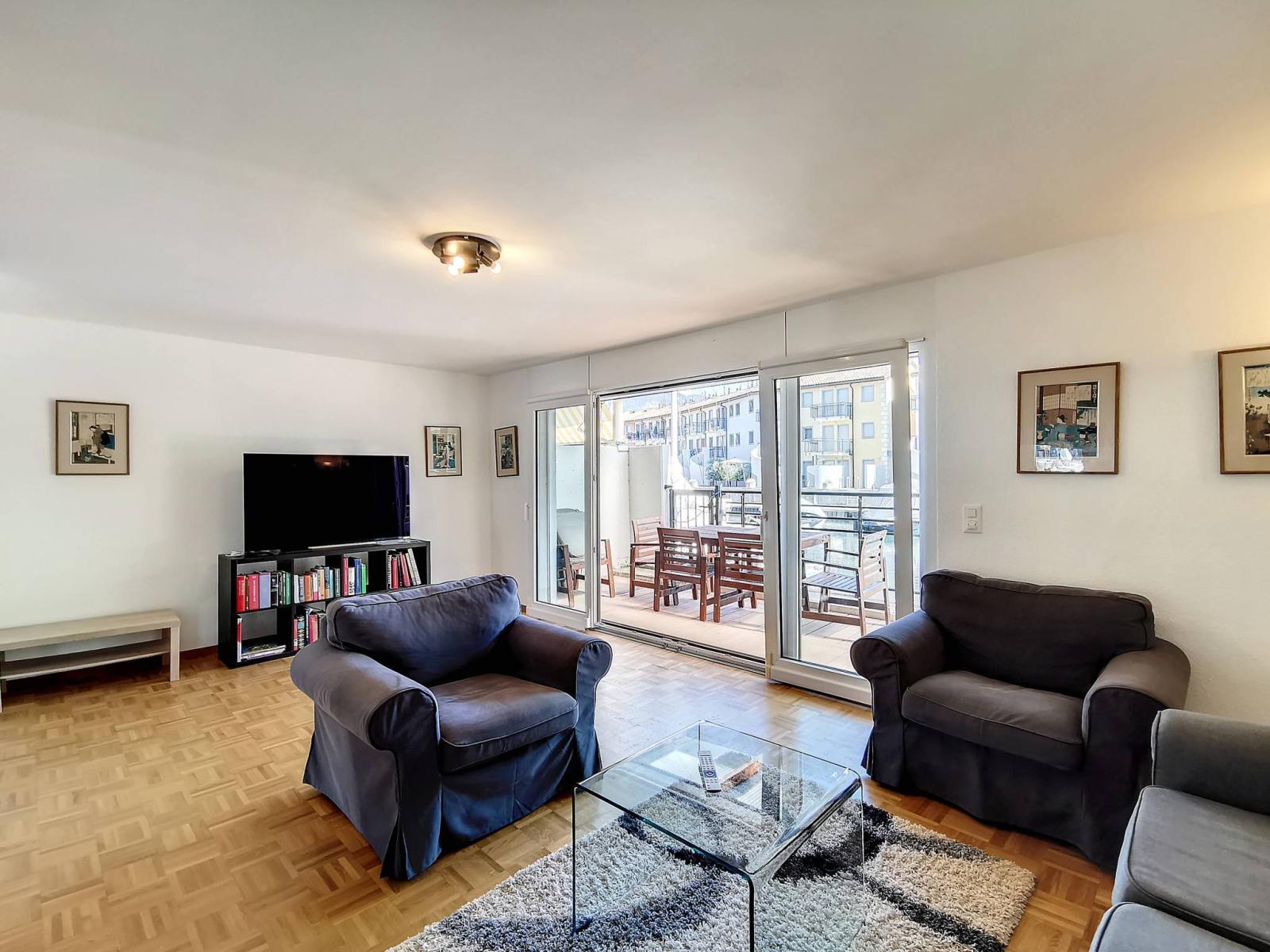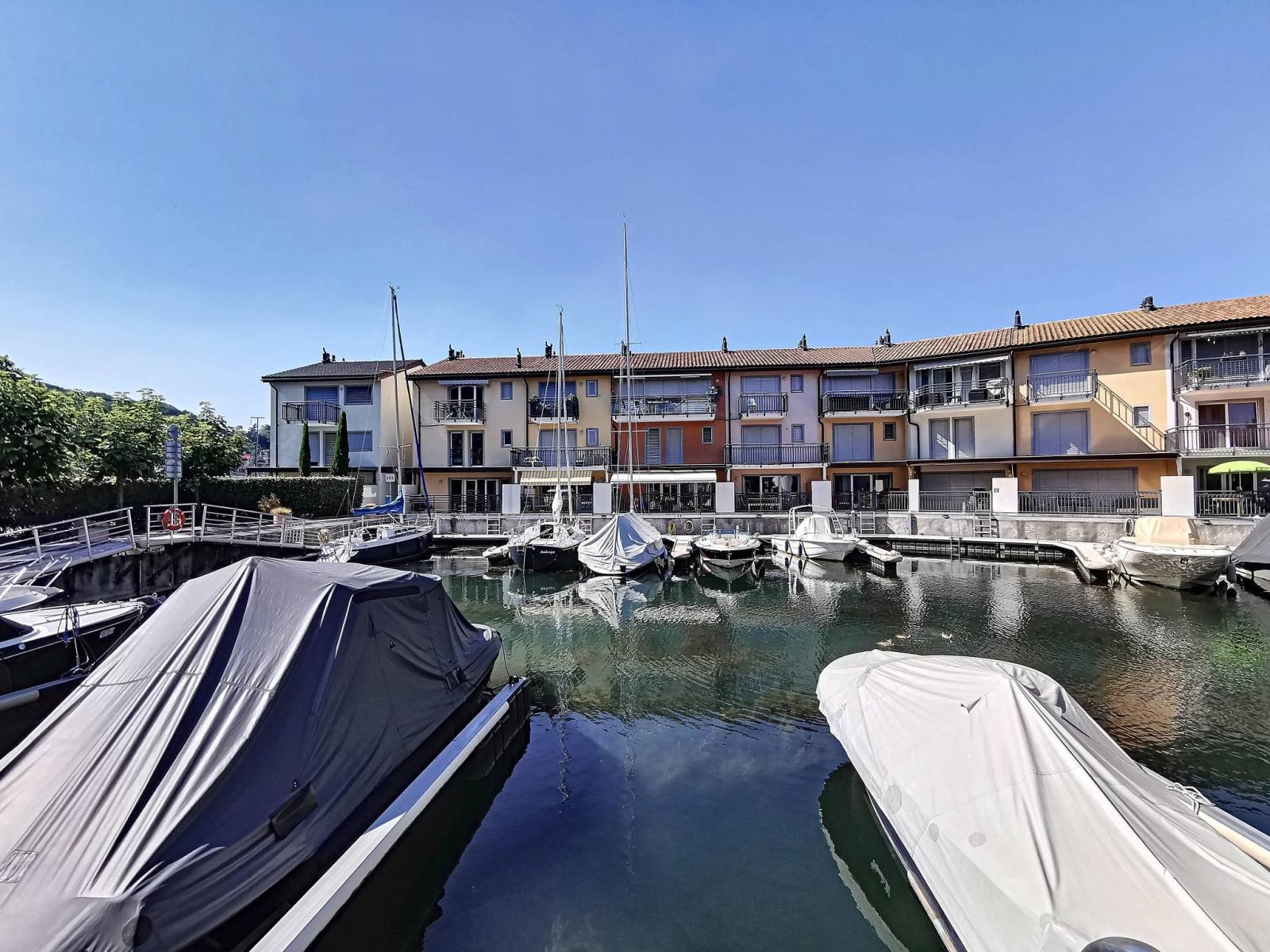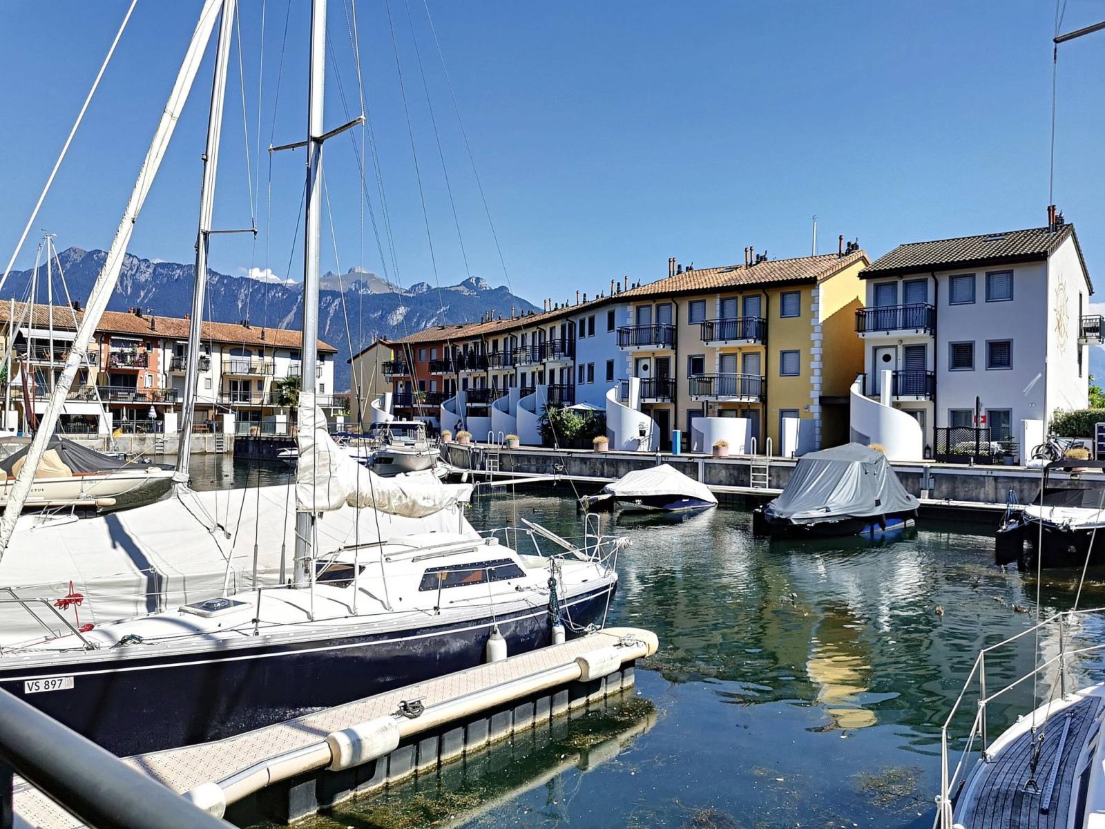 Diese großzügige 4.5-Zimmer-Wohnung befindet sich im Erdgeschoss und im 1. Stock der renommierten Marina du Bouveret/Port-Valais. Es verfügt über ca. 141 m², mit zwei Terrassen und einer Pergola.