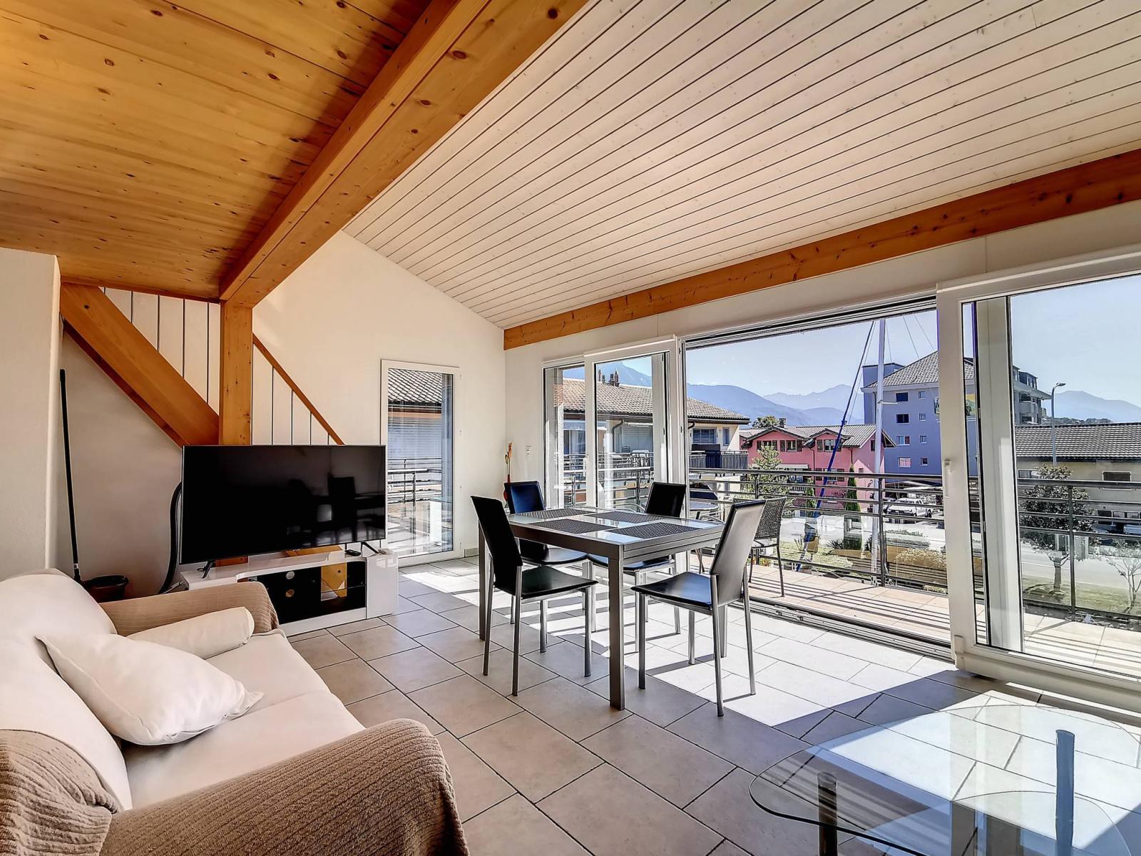 Diese geräumige 2,5-Zimmer-Wohnung + Mezzanine befindet sich im 2. Stock und Dachgeschoss der renommierten Marina du Bouveret/Port-Valais. Es verfügt über ca. 85 m² Wohnfläche und ist klimatisiert.