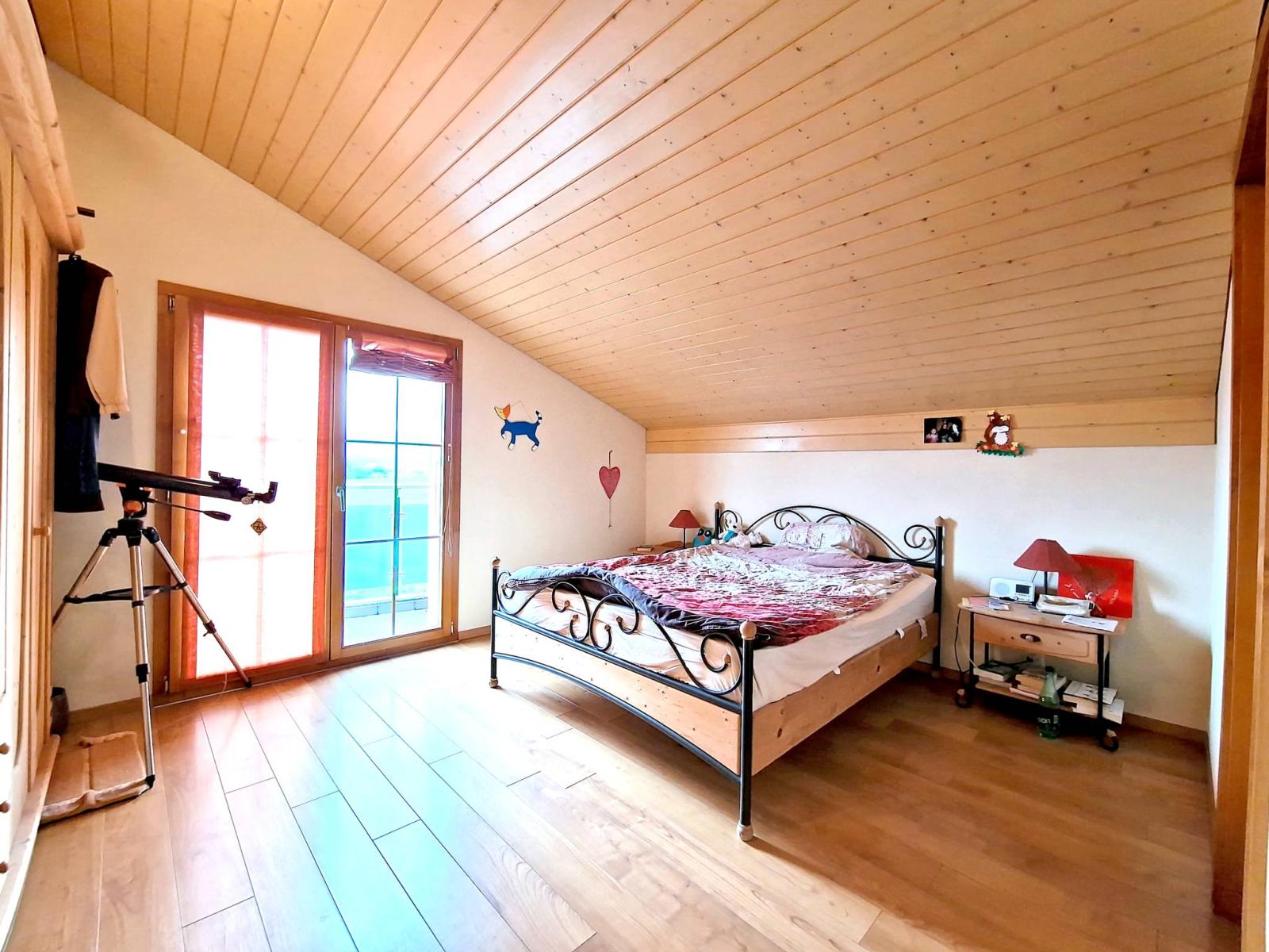 Dieses nach Westen ausgerichtete Haus wird Sie mit seinen vielen Vorzügen überzeugen, insbesondere mit seinem großen und geräumigen Wohnzimmer mit Kamin, seiner offenen Küche mit Speisekammer und seinem freien Blick auf die Voralpen und das Château de Gruyères.