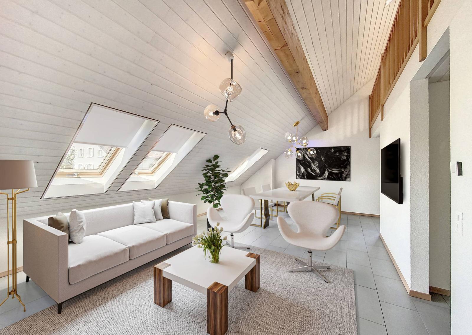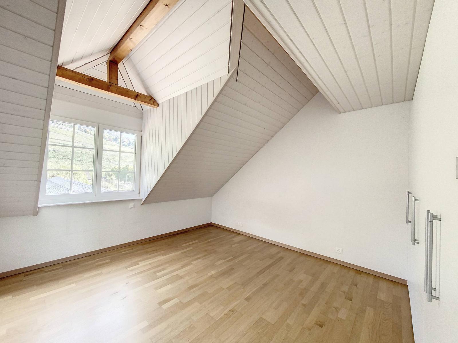 Diese 4,5-Zimmer-Maisonette-Wohnung liegt in einer ruhigen Gegend im Zentrum von Clarens, in der Nähe von Schulen, dem See, öffentlichen Verkehrsmitteln und allen Annehmlichkeiten. Sie befindet sich im obersten Stockwerk einer kleinen Residenz mit nur 6 Wohnungen.