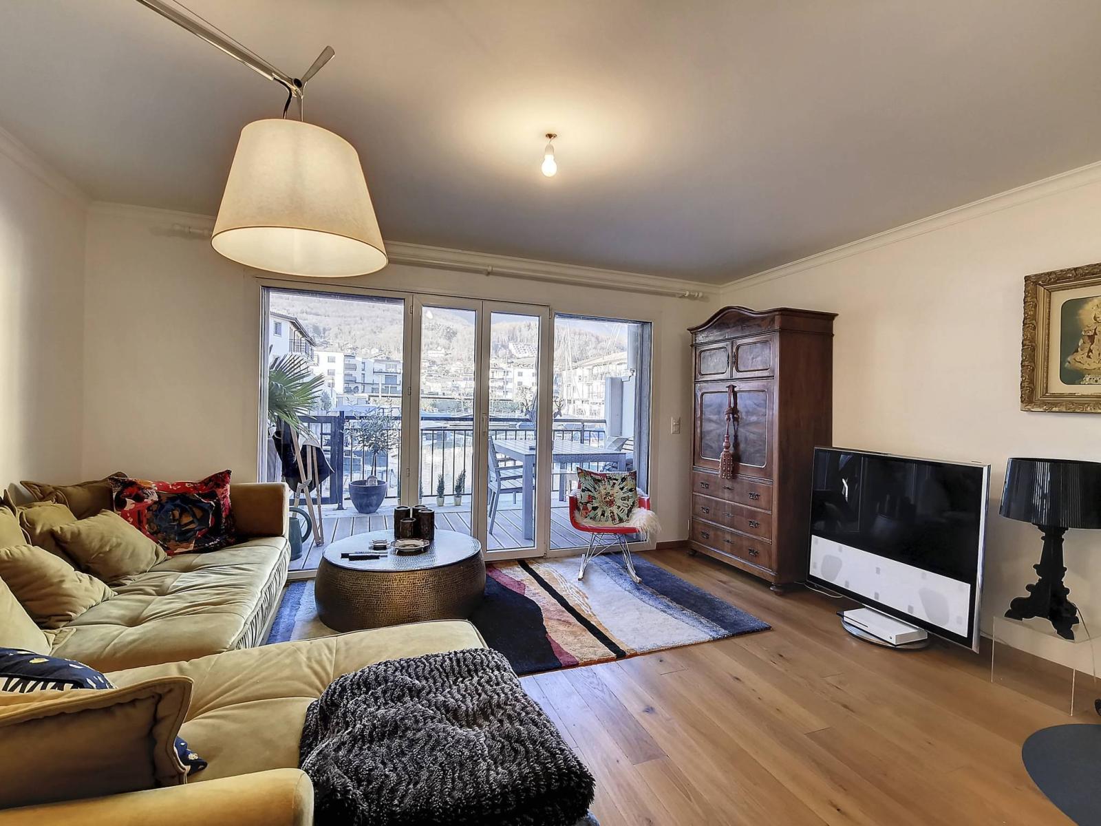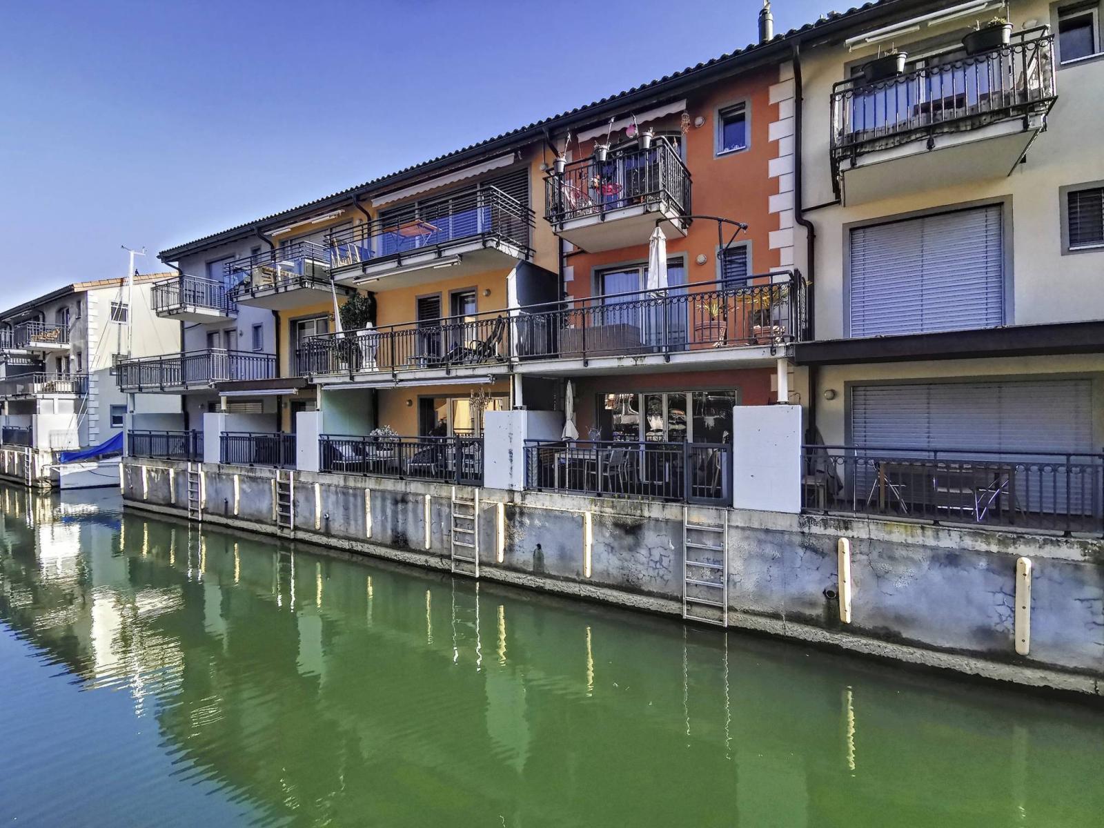 Diese 3,5-Zimmer-Maisonette-Wohnung befindet sich im Erdgeschoss und im 1. Stock der renommierten Marina du Bouveret/Port-Valais. Es verfügt über ca. 108 m² (Bruttogrundfläche), mit einem Balkon im Obergeschoss, einem großen Balkon und einer Terrasse.