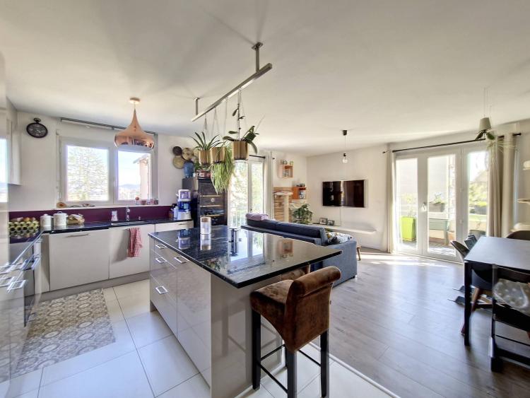 Diese 3,5-Zimmer-Wohnung besteht aus einer einladenden Eingangshalle mit Garderoben, 2 schönen Schlafzimmern, von denen eines mit einem maßgeschneiderten Stauraum ausgestattet ist. Sowie ein helles und modernes Badezimmer und WC und schließlich ein geräumiges Wohnzimmer mit offener Küche, die Zugang zu einem ca. 8 m² großen Balkon bietet.