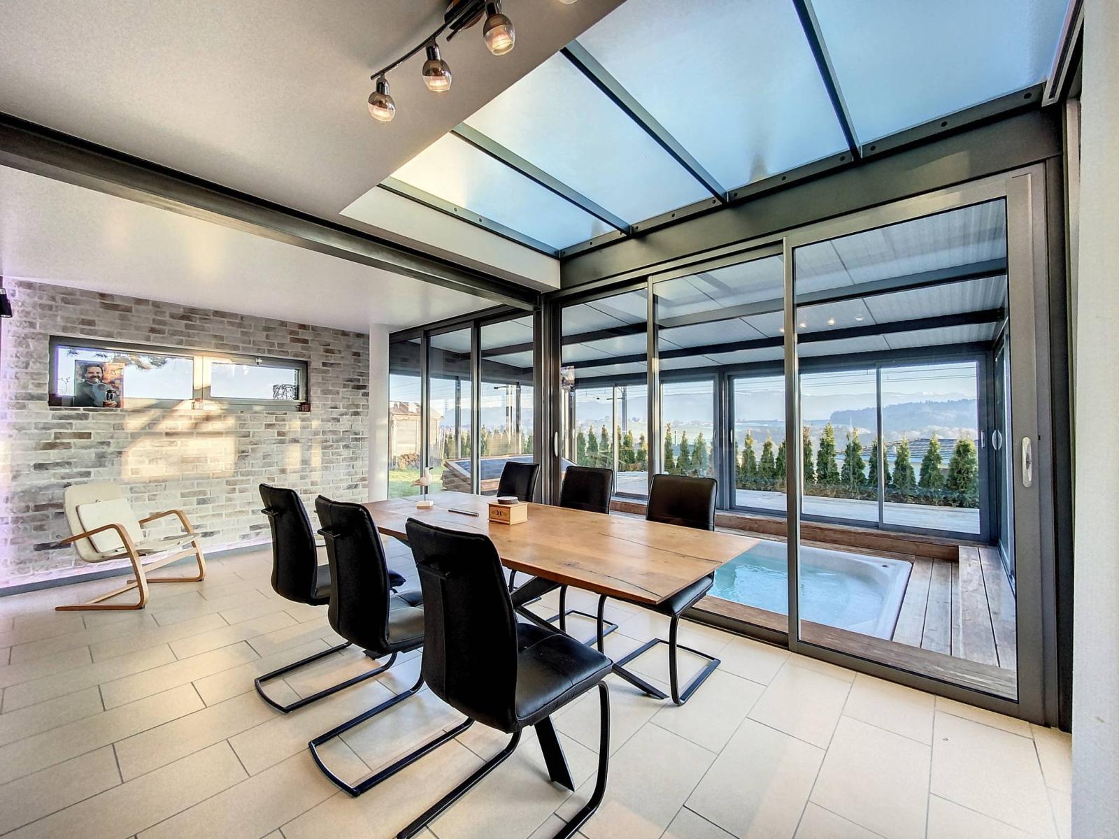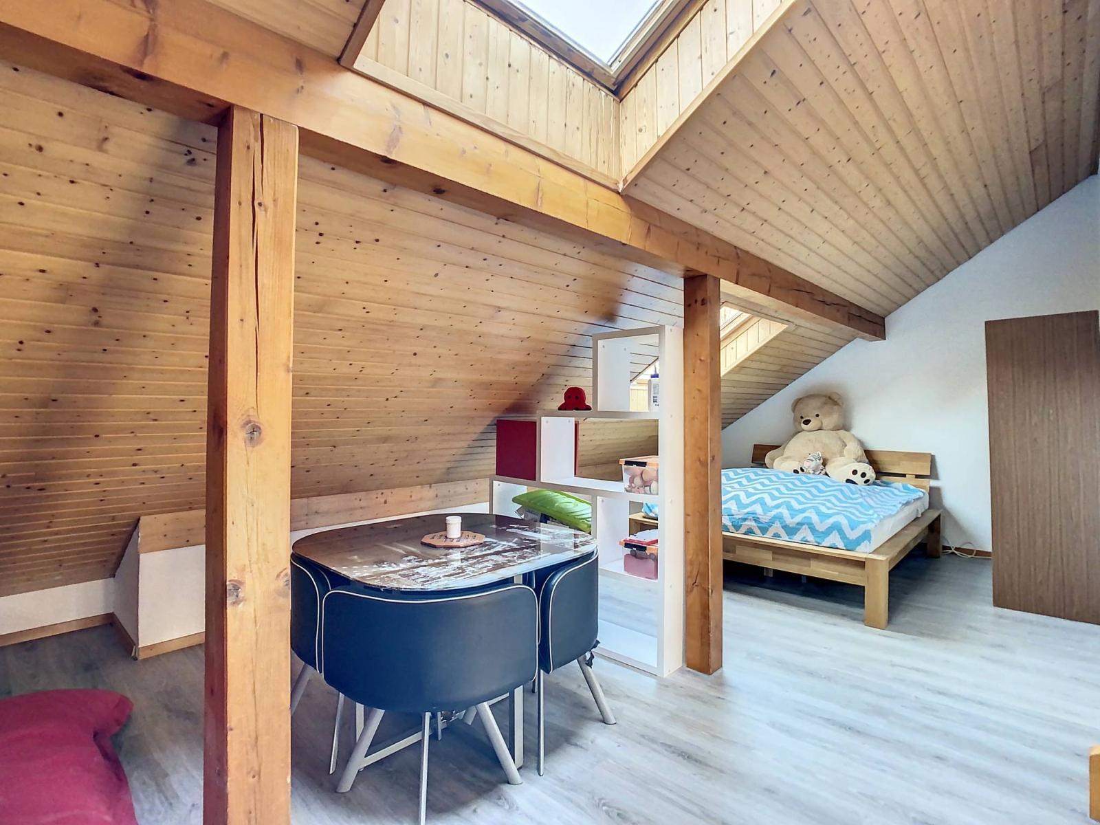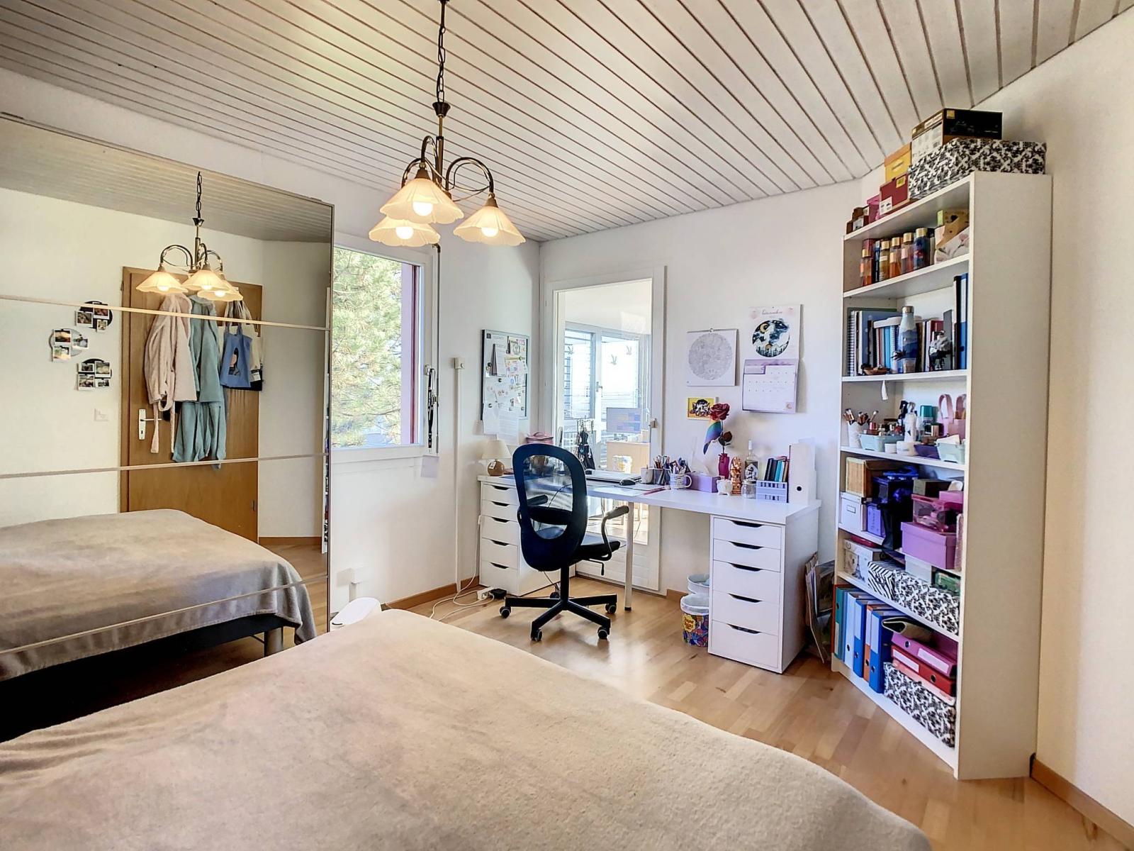 Halb ausgebaut verfügt es über insgesamt 6 Halbgeschosse und bietet Ihnen eine Nutzfläche von 236 m², davon 182 m² Wohnfläche. Dieses nach Süden ausgerichtete Haus wird Sie mit seinen vielen Vorzügen, insbesondere seiner freien Aussicht, überzeugen der Voralpen sowie seine offene Küche im großen und geräumigen Wohnzimmer, ausgestattet mit einem Kamin mit Wärmerückgewinnung.