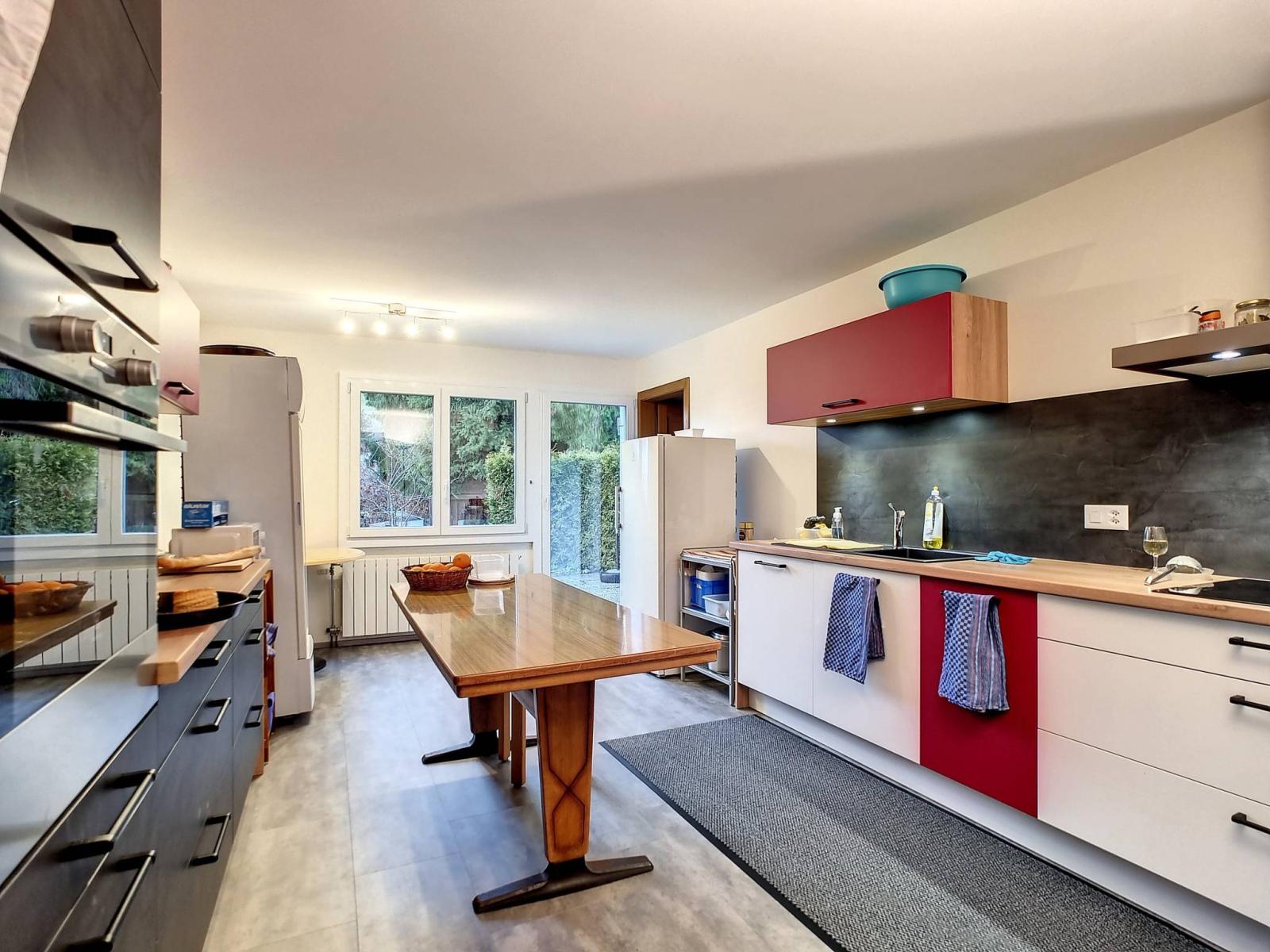 Es besteht aus zwei unabhängigen Wohnungen mit 5,5 und 4,5 Zimmern, einem großen Garten, einer Terrasse von 45 m² und einem geräumigen Keller von rund 200 m². Darüber hinaus ist es intelligent eingerichtet und verfügt über eine Garage mit Platz für 4 Fahrzeuge, eine geräumige Werkstatt von 42 m², einen Holzschuppen, einen Keller sowie einen Technikraum.