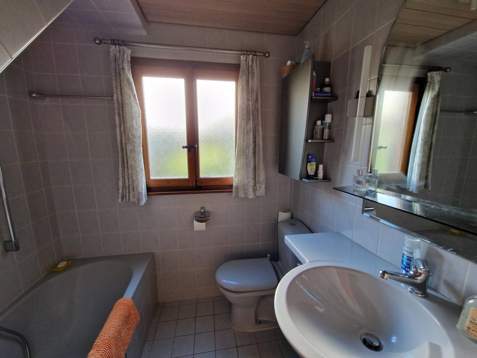 Es verfügt insbesondere über 2 Schlafzimmer im Erdgeschoss und das Dachgeschoss wird als zusätzliche Schlafzimmer genutzt. Neben dem Esszimmer gibt es ein Wohnzimmer (Anbauteil an der Garage) mit Kamin und einem großen Volumen und einer Höhe von ca. 4,50 m First, ein Gäste-WC und ein Duschbad.