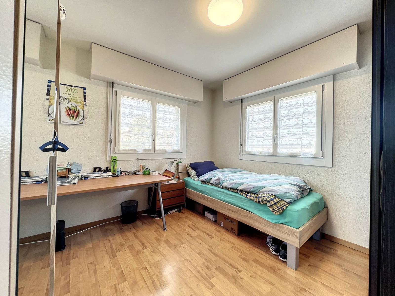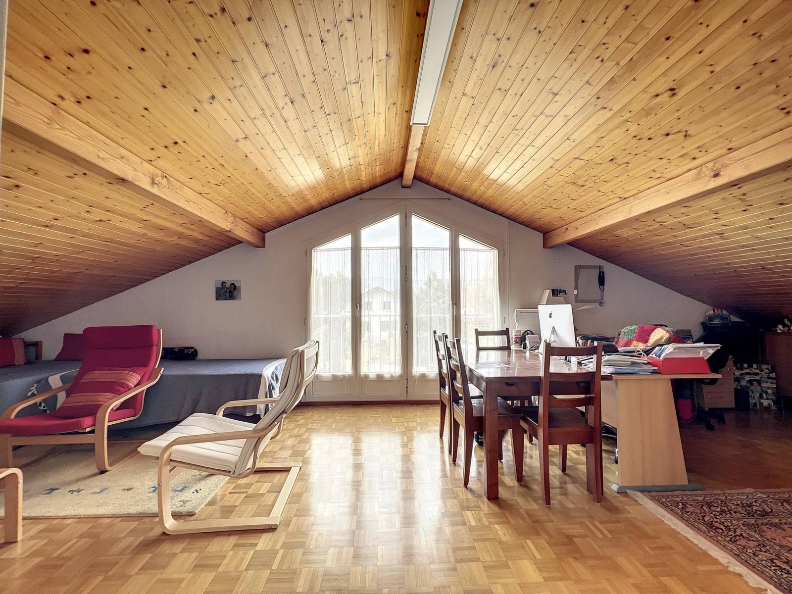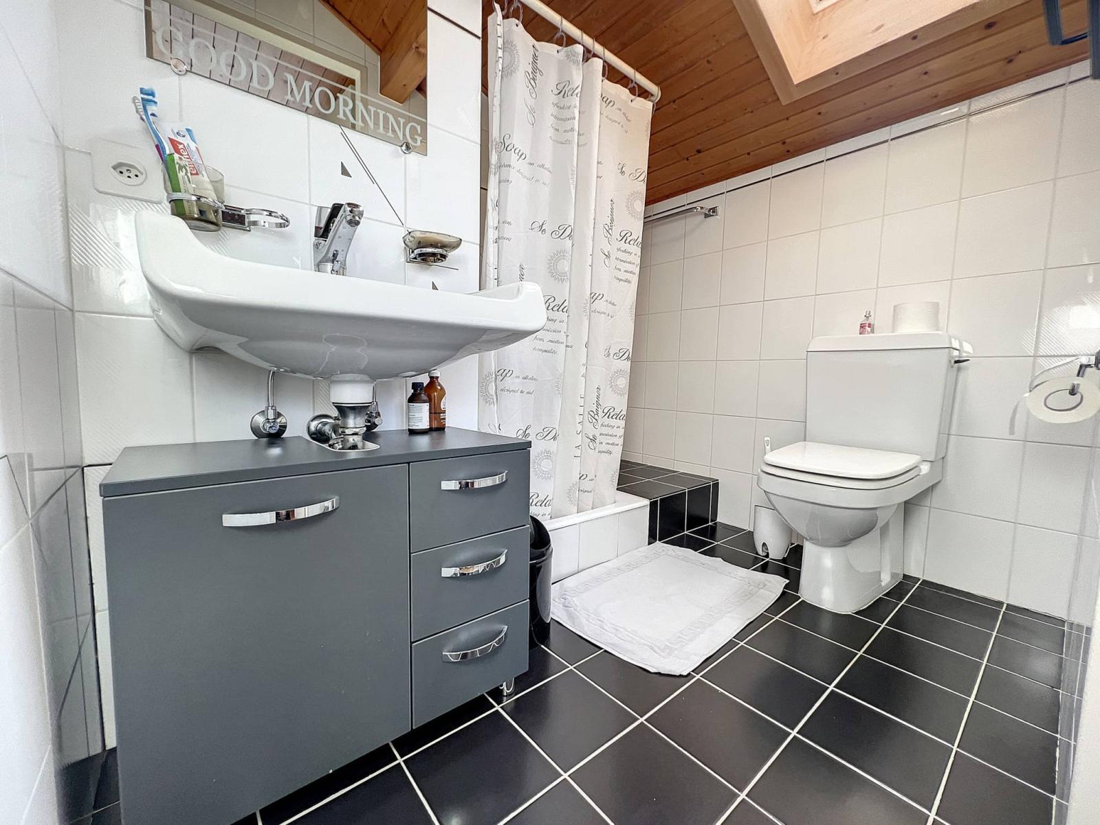 Im Dachgeschoss befindet sich ein großes und helles Zimmer mit Duschbad, das problemlos als 4. Schlafzimmer genutzt werden kann.