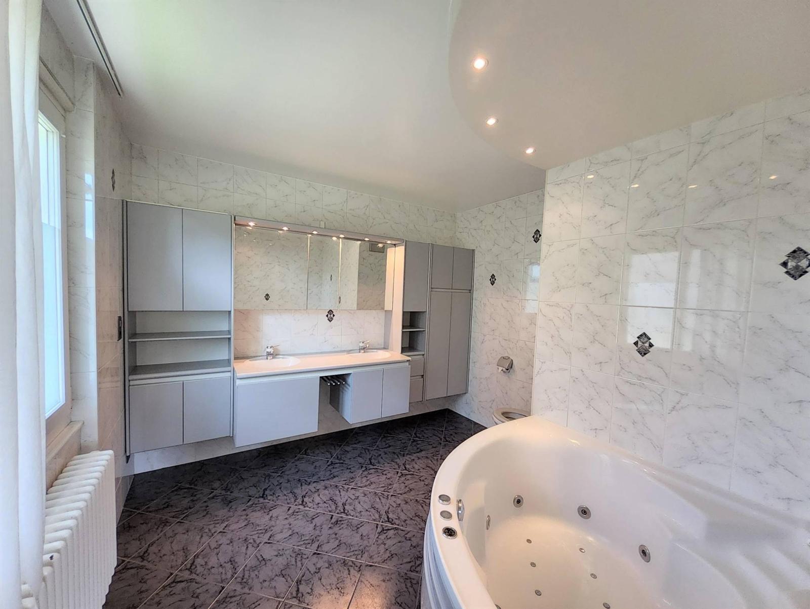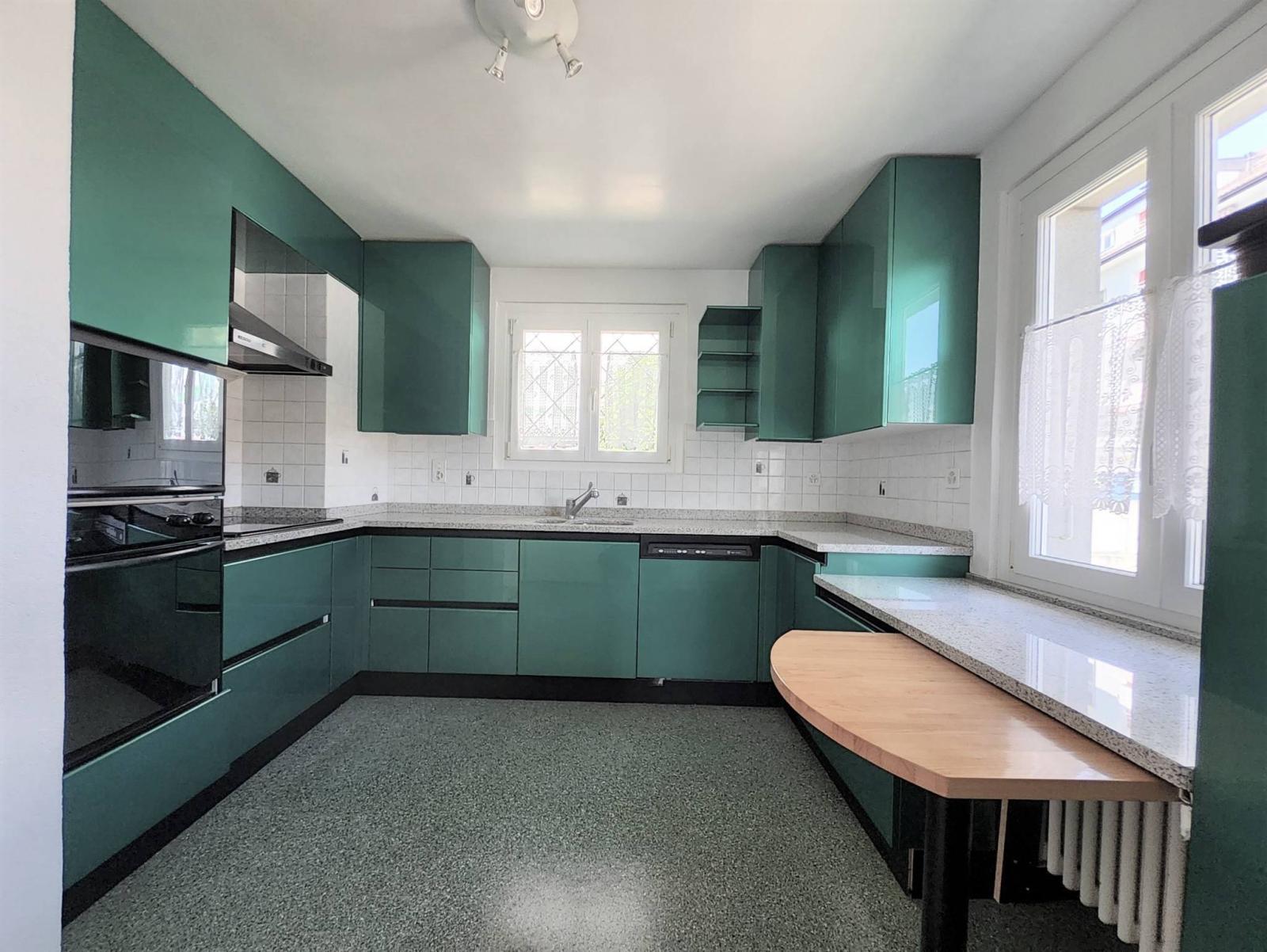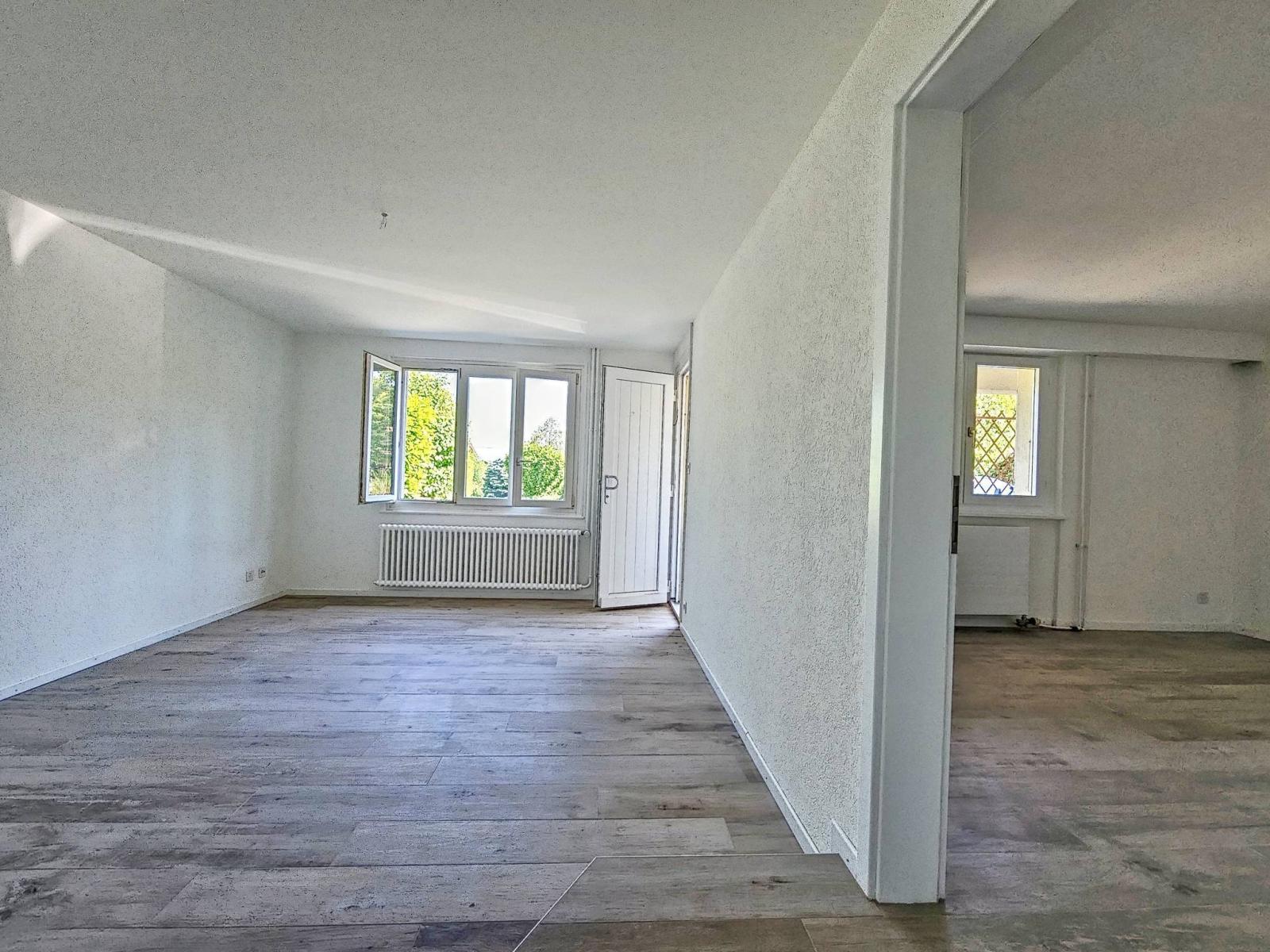 Das Haus aus dem Jahr 1964 wurde 1994 zum ersten Mal renoviert, dann wurde 2001 der 1. Stock (d. h. die 3,5-Zimmer-Wohnung) erneuert (Doppelverglasung) und dann 2014 (Gemälde + Bodenbelag in den Fluren und im Wohnzimmer). Lediglich das Badezimmer mit dem Platz für die Waschsäule und das Gäste-WC wurde nicht erneuert. Was das Erdgeschoss betrifft, wird die 2,5-Zimmer-Wohnung im Jahr 2023 renoviert: die Böden und Gemälde im Wohnzimmer, im Schlafzimmer und im Badezimmer (+ Ausrüstung). Lediglich die Küchenaufteilung ist älter. Allerdings stammen die Ausstattungen wie der Backofen, das Cerankochfeld und der Kühlschrank aus dem Jahr 2013.