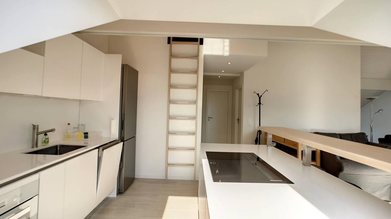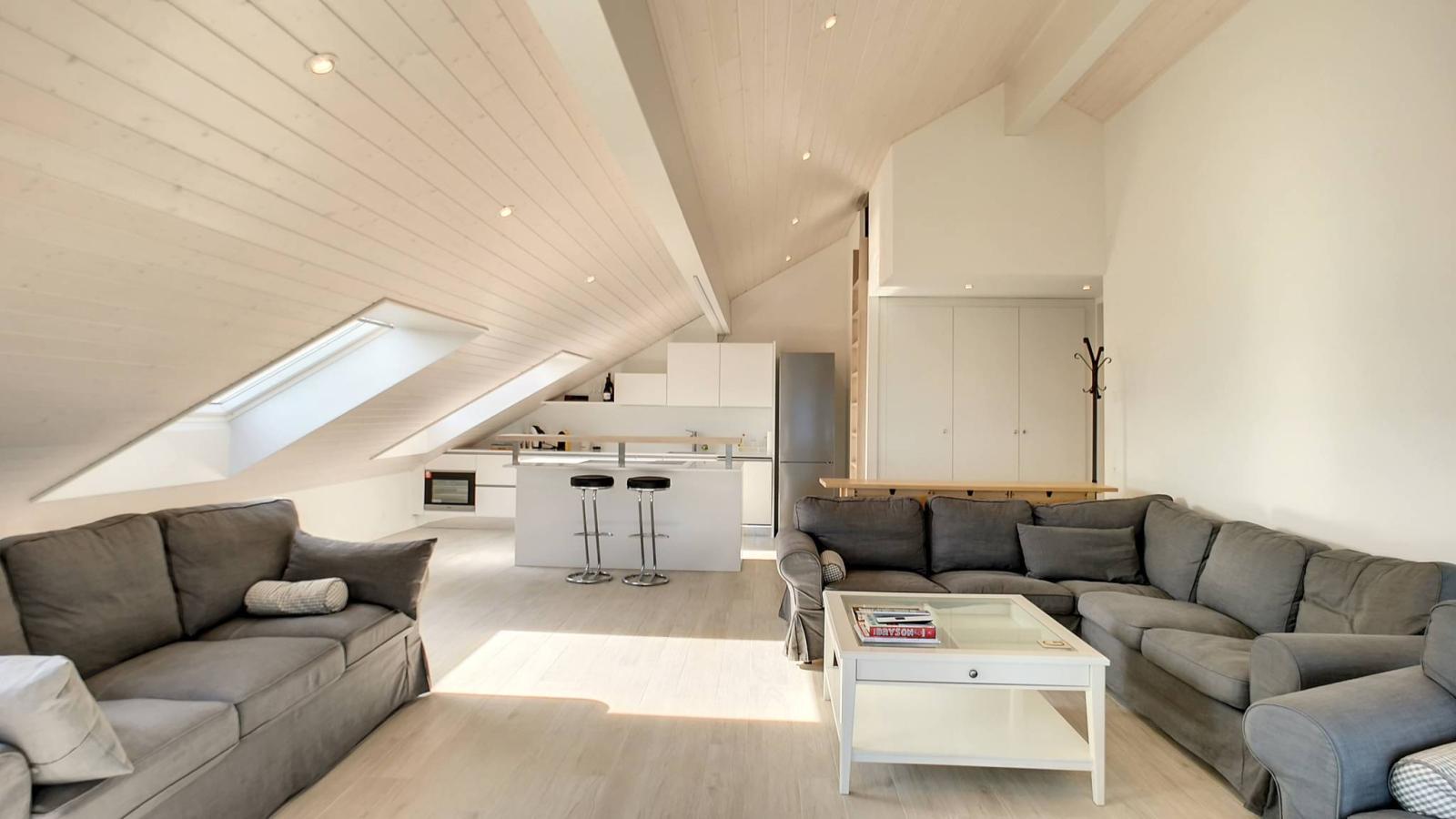 Es verfügt über eine Wohnfläche von ca. 98 m² sowie ein Dienstbarkeitsrecht für den Zugang zu einer Terrasse mit Garten von ca. 40 m², die eine halbe Ebene tiefer liegt. (104 m² Steuer).