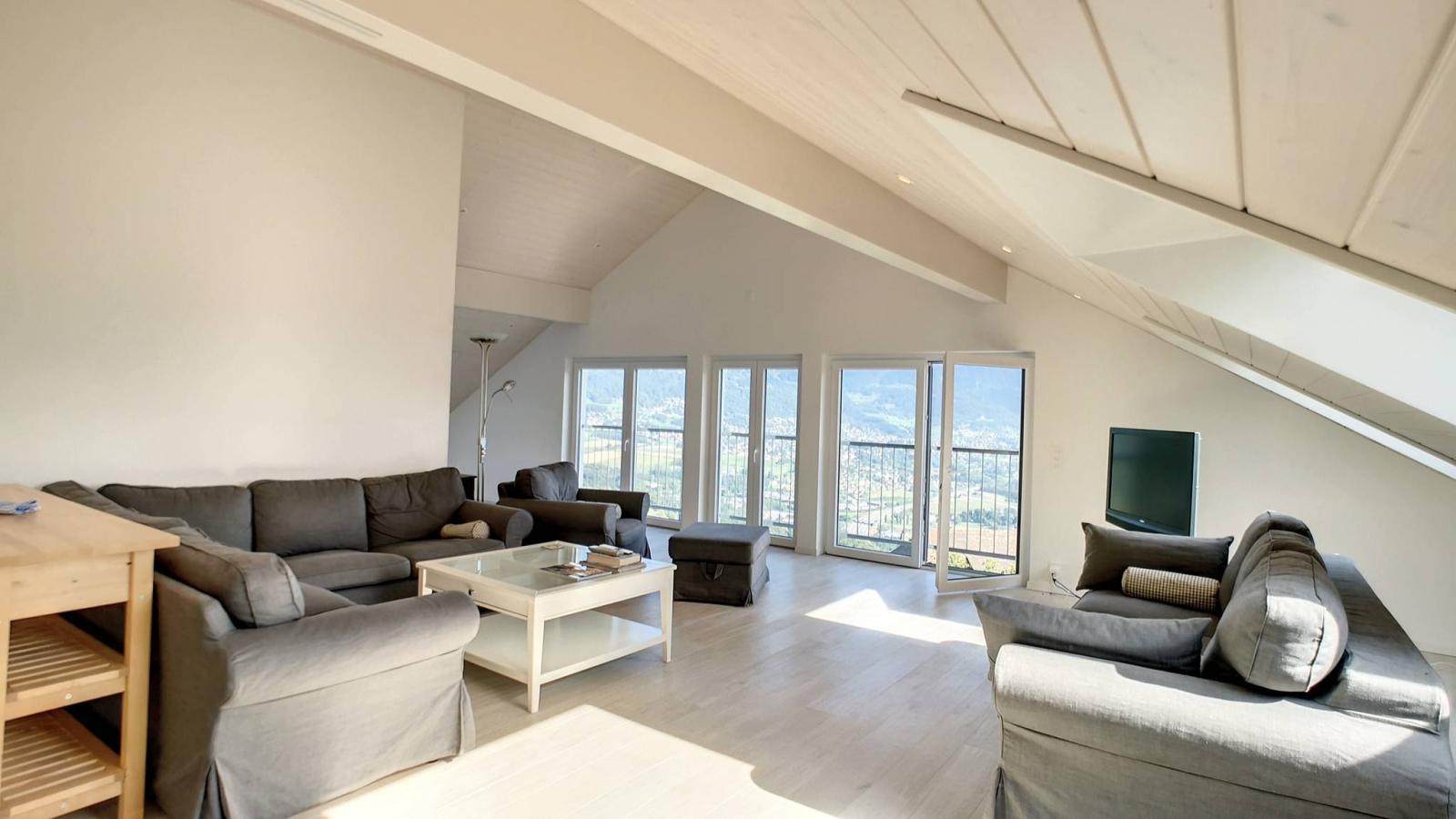 Seine Südwestausrichtung bietet optimale Helligkeit und einen atemberaubenden Blick auf den Genfersee und die Berge.