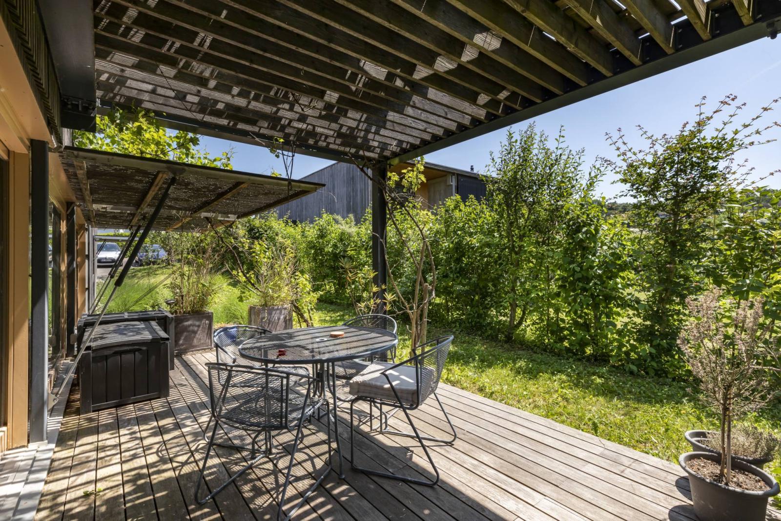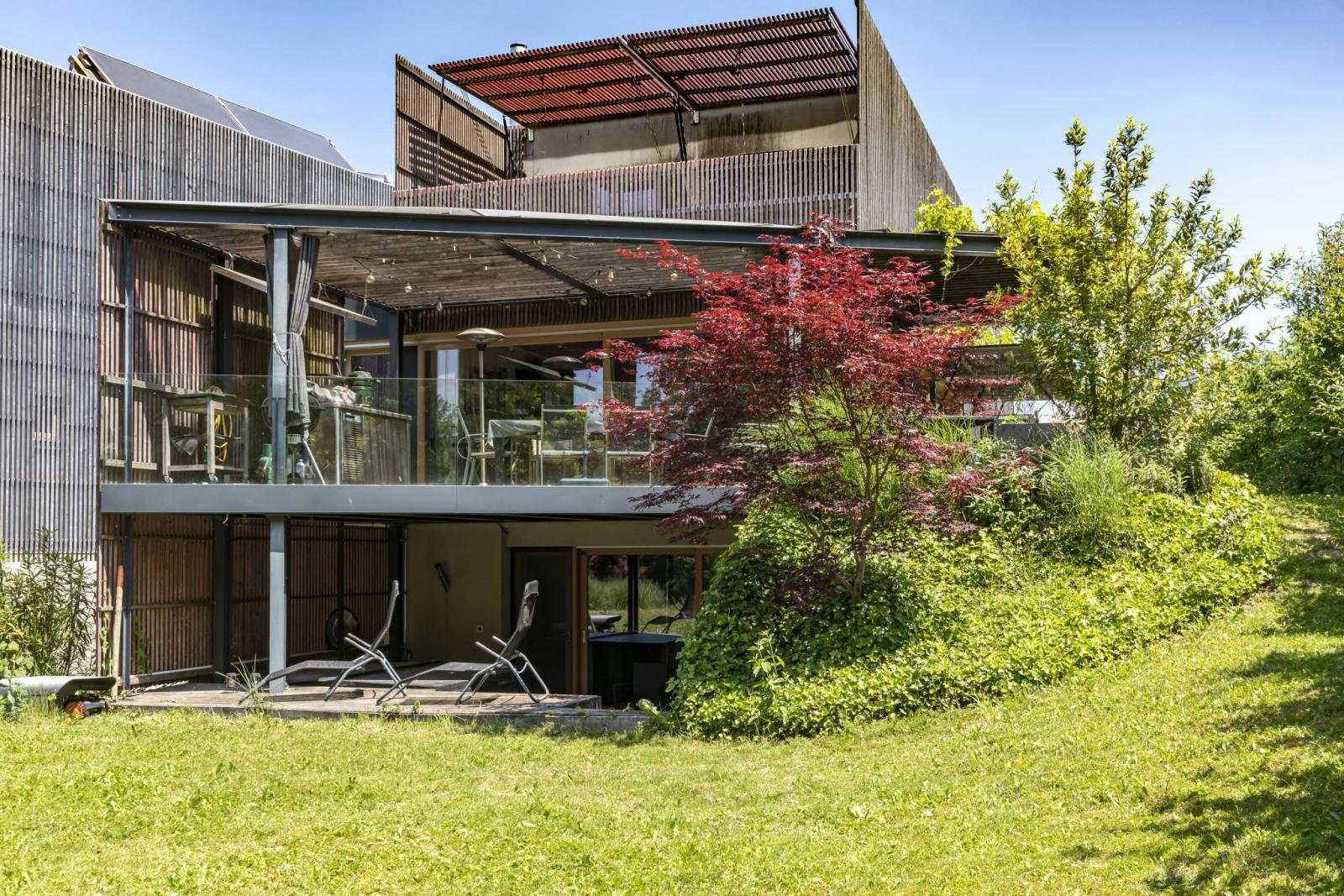 Das Anwesen verfügt über insgesamt 3 Terrassen mit mehreren unterschiedlichen Zugängen, eine davon verfügt über einen Whirlpool. Ein wunderschöner, gepflegter und schön bewaldeter Garten schmückt den Außenbereich.