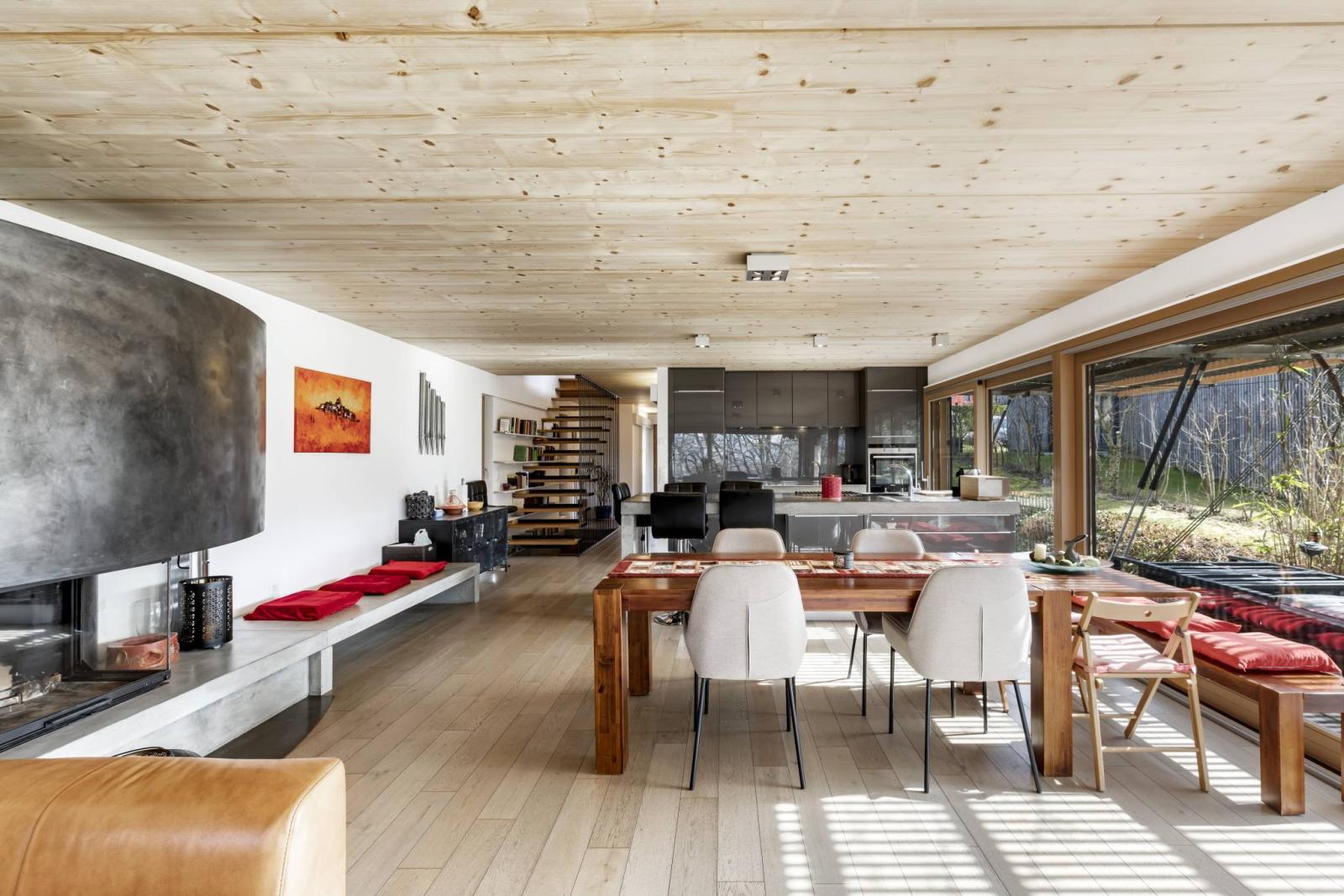 Dieses schöne, von einem Architekten entworfene Haus liegt ideal in einem Wohngebiet von Cheseaux-Noréaz, in der Nähe aller Annehmlichkeiten und der Stadt Yverdon-les-Bains. Es liegt auf einem wunderschön bewaldeten Grundstück von 732 m² und genießt eine grüne Umgebung am Waldrand.