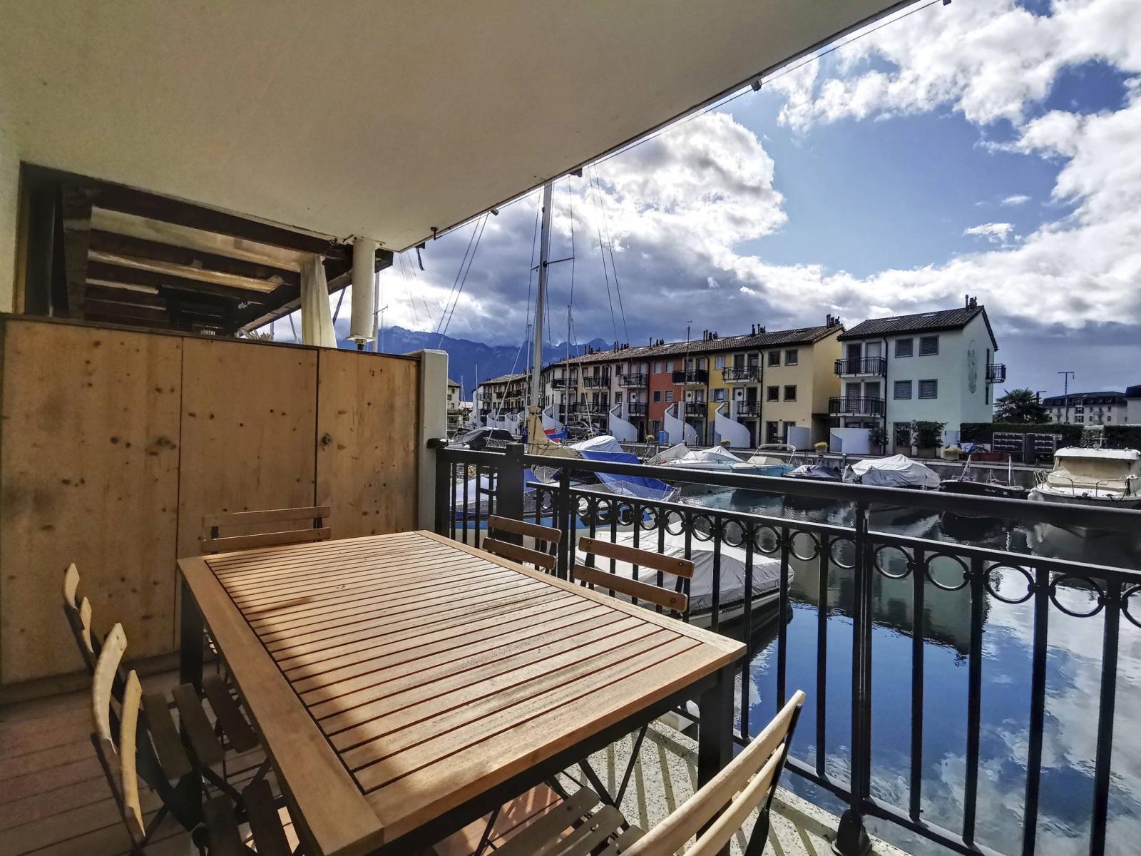 Diese 3,5-Zimmer-Maisonette-Wohnung befindet sich im Erdgeschoss und im 1. Stock der renommierten Marina du Bouveret/Port-Valais. Es verfügt über ca. 108 m² (Bruttogrundfläche), mit zwei Balkonen im Obergeschoss und zwei Terrassen im Erdgeschoss. Die Materialien und Verarbeitung sind von sehr guter Qualität und sorgfältig.