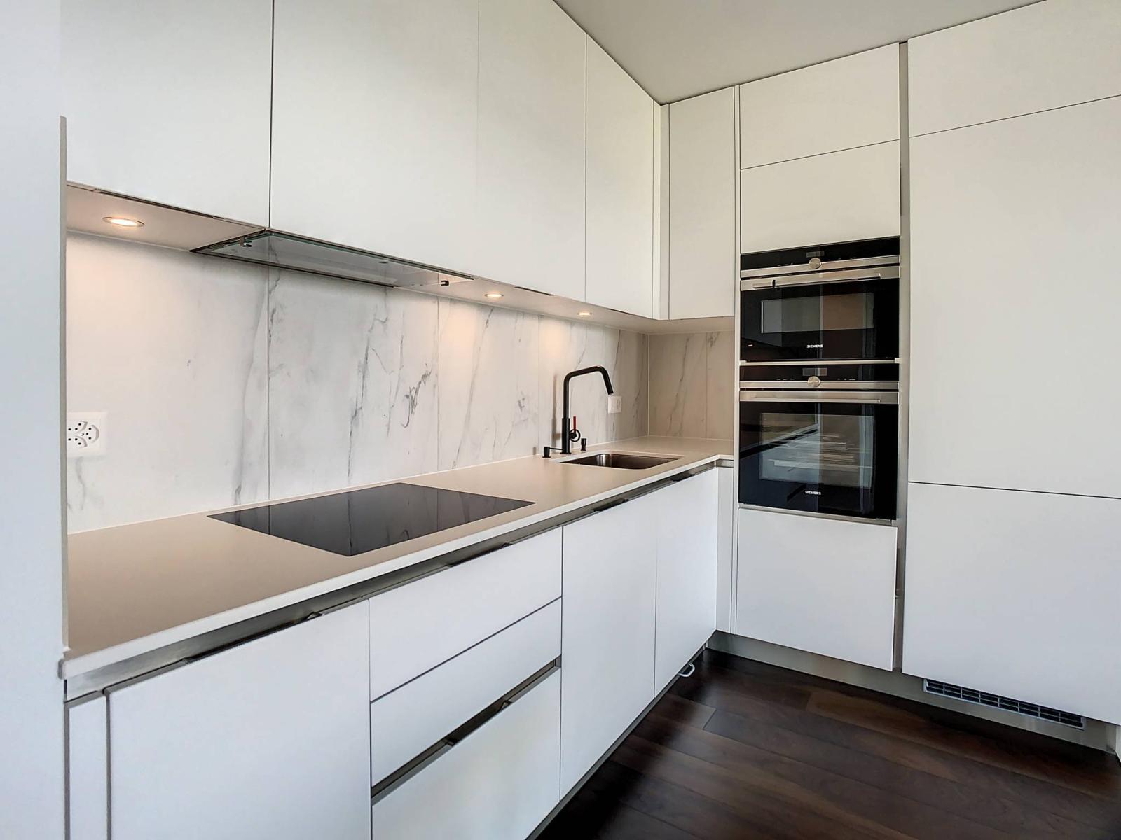 Es verfügt über viele Vorteile wie eine etwa 20 m² große Teakholzterrasse mit automatischer Bewässerung, eine voll ausgestattete Küche mit Dampfgarer, Mikrowelle und Keramik-Quarz-Arbeitsplatte der neuesten Generation, ein modernes Badezimmer mit ebenerdiger Dusche, eine Toilette und eine angeschlossene Toilette Die ZUG-Waschmaschine und schließlich die Hausautomation, mit der Sie Heizung, Beleuchtung und Jalousien über eine mobile Internetanwendung steuern können.
