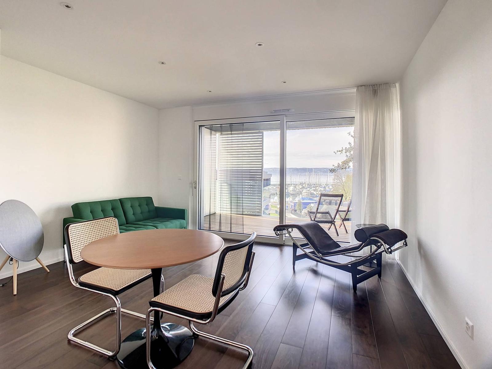 Am Ufer des Neuenburgersees, in unmittelbarer Nähe des Hafens und des Strandes von St-Aubin-Sauges, bietet diese 2,5-Zimmer-Wohnung eine hochwertige Ausstattung und einen herrlichen Blick auf den See.
