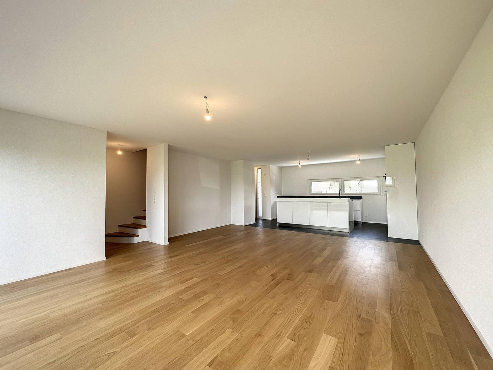 Diese große 3,5-Zimmer-Maisonette-Wohnung aus dem Jahr 2021 in einer kleinen PSA mit nur 2 Wohneinheiten genießt eine freie Aussicht in einer ruhigen Wohngegend.