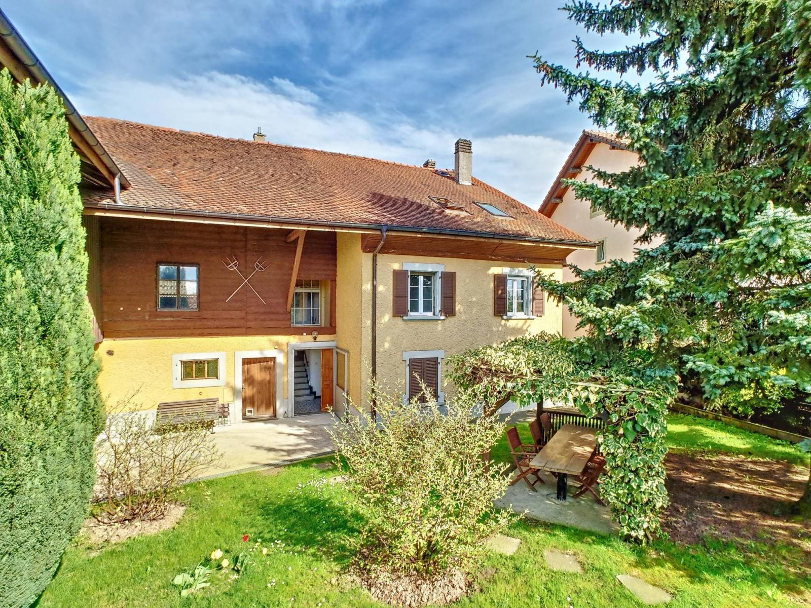 Im charmanten Dorf Chapelle-sur-Moudon, weniger als 15 Minuten von Echallens und 30 Minuten von Lausanne entfernt, befindet sich ein hübscher Waadtländer Bauernhof aus dem Jahr 1892 auf einem Grundstück von 1.996 m².