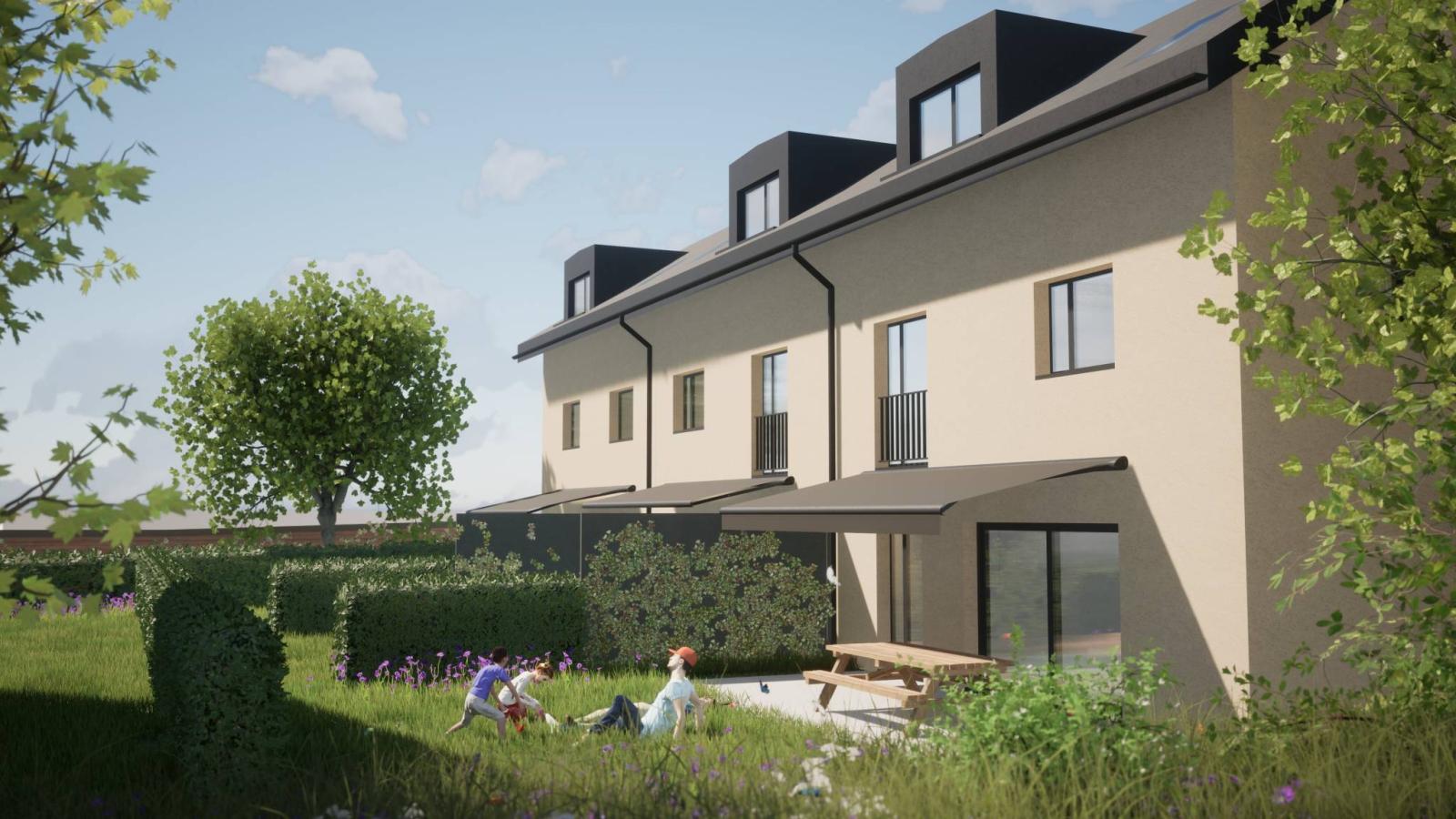 Dieses Off-Plan-Projekt mit 6 aneinandergrenzenden Villen verteilt auf 2 Gebäudeblöcke in einer Grünanlage in der Umgebung bietet eine Wohnfläche von 160 m² + Keller im Dorfstil mit allen modernen Annehmlichkeiten (Fußbodenheizung über eine Luft/Wasser-Wärmepumpe). ; elektrische Jalousien; Photovoltaikpaneele; Dreifachverglasung usw.