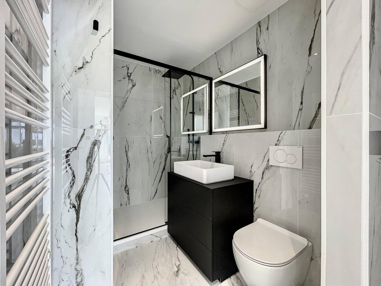- Zwei Schlafzimmer, darunter ein Hauptschlafzimmer mit eigenem Duschbad;