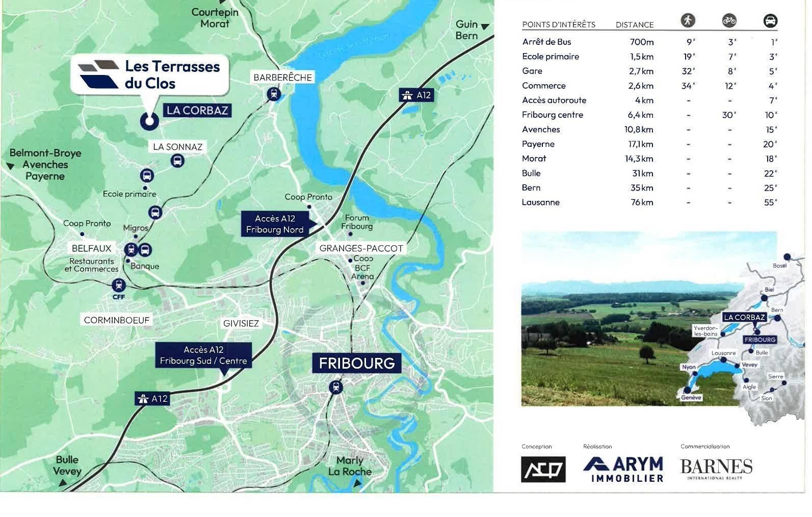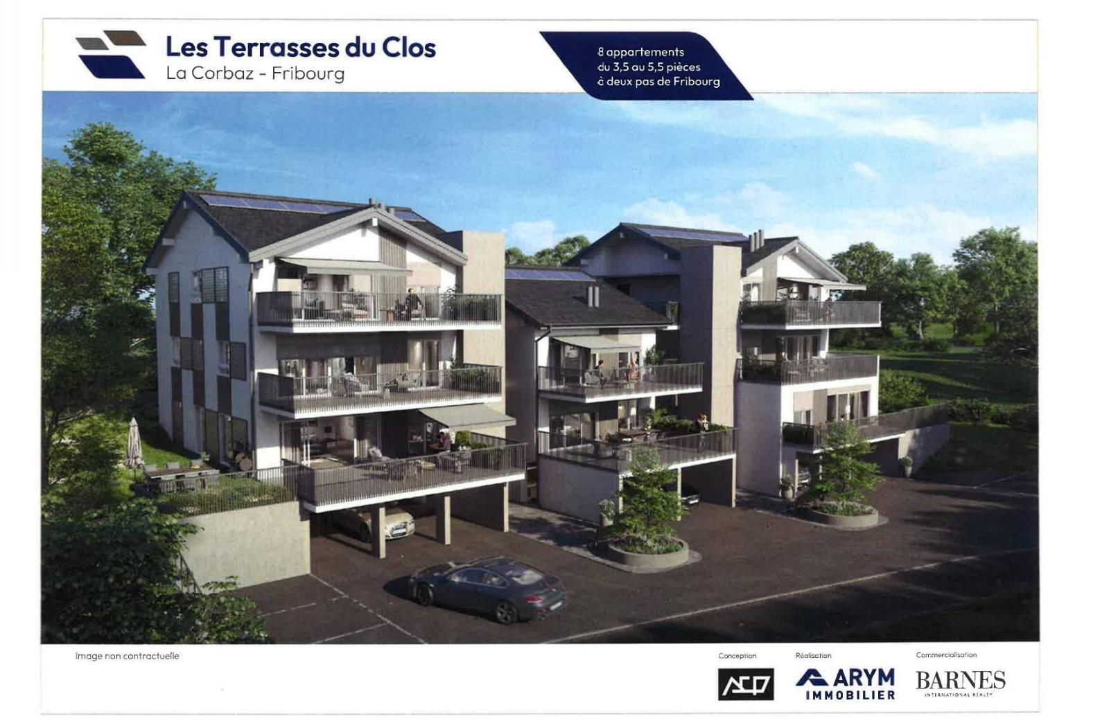 Die neue Residenz „Les Terrasses du Clos“ liegt in einer idyllischen Umgebung im Herzen der charmanten Stadt Corbaz, die auf halbem Weg zwischen Courtepin und Freiburg liegt.