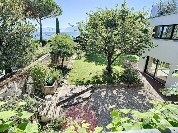 Im ersten Stock befinden sich 5 Schlafzimmer (mit schönen Parkettböden), darunter die Master-Suite mit angrenzendem Badezimmer und eine große 50 m² große Terrasse mit herrlichem Blick auf die Bucht von Morges.