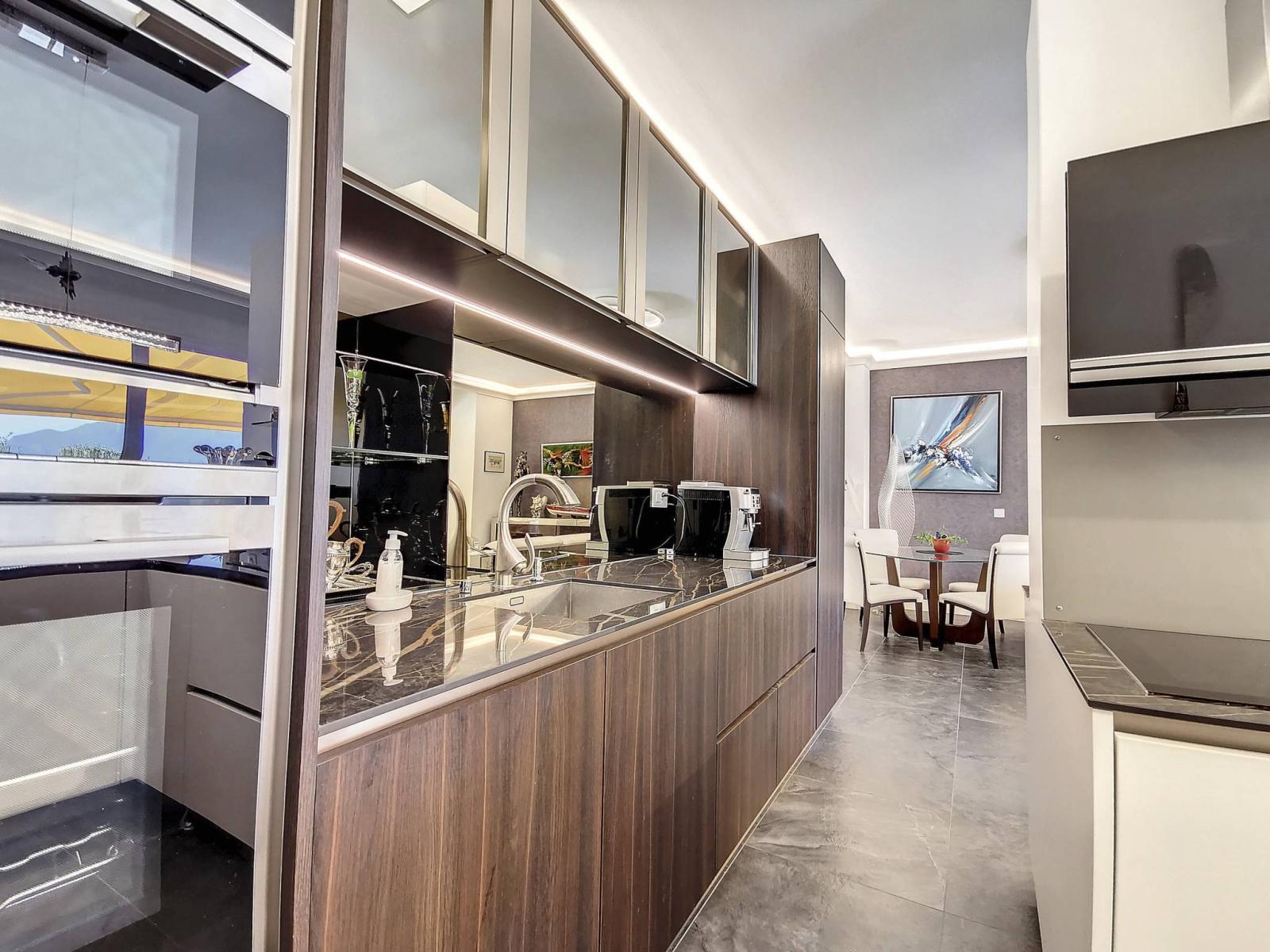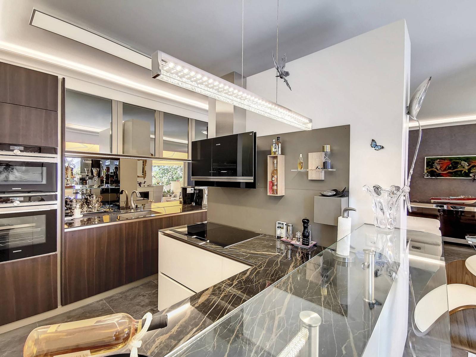 Die Südwestausrichtung sorgt für maximale Helligkeit und einen sensationellen Panoramablick. Die außergewöhnlichen Wohnräume, die hohen Decken und die hochwertige Ausstattung machen es zu einem seltenen und exklusiven Anwesen. Die großen und geräumigen Zelte bieten zudem Privatsphäre in den oberen Etagen.