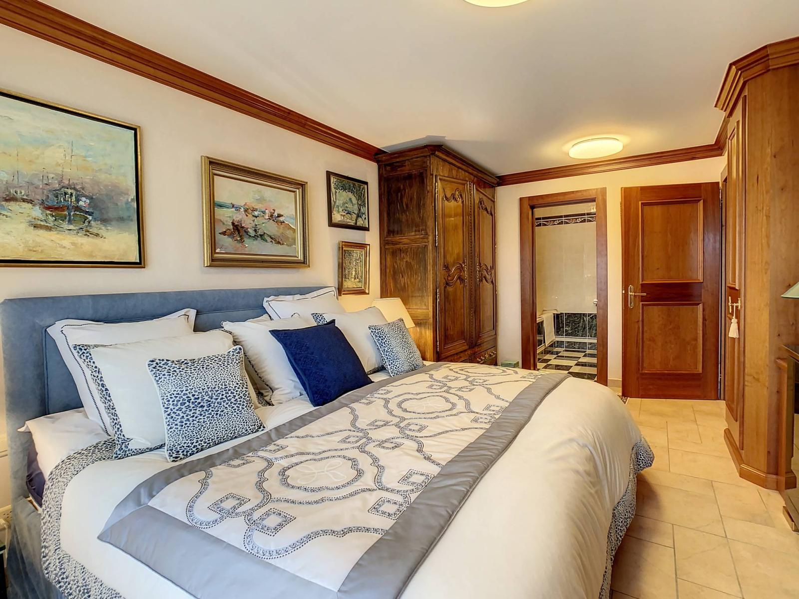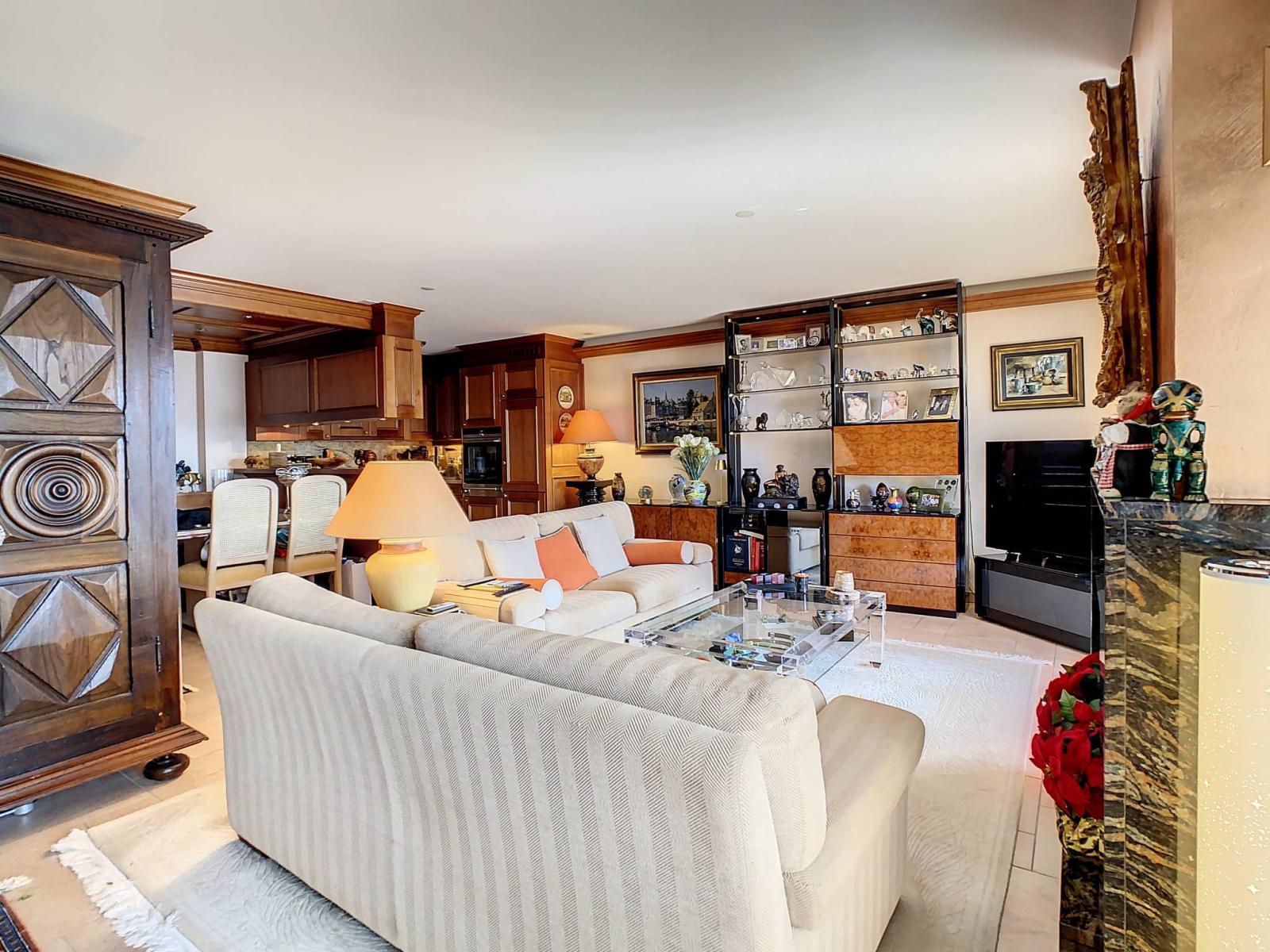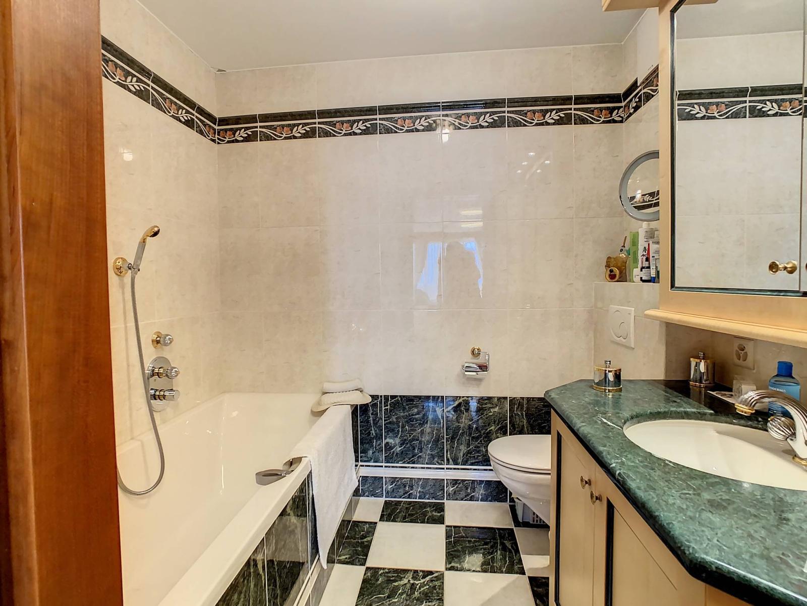 Diese Immobilie präsentiert einen wunderschönen Wohnraum mit einem geräumigen und hellen Wohnzimmer, einem schönen Kamin und einem Lichtspiel, das eine gemütliche und warme Atmosphäre schafft. Ein großes Hauptschlafzimmer mit angrenzendem Badezimmer (Badewanne, WC, Waschbecken, Spiegel) mit direktem Zugang zum Südbalkon bereichert den Schlafbereich.