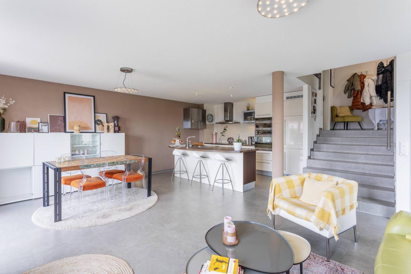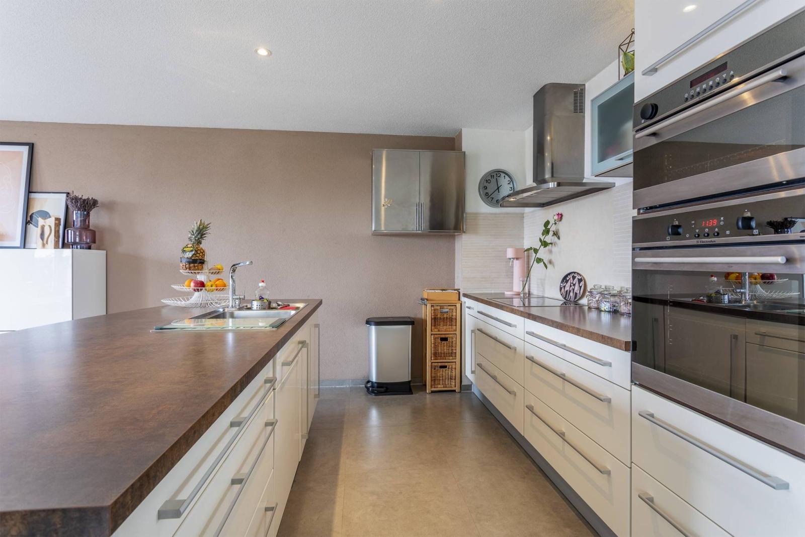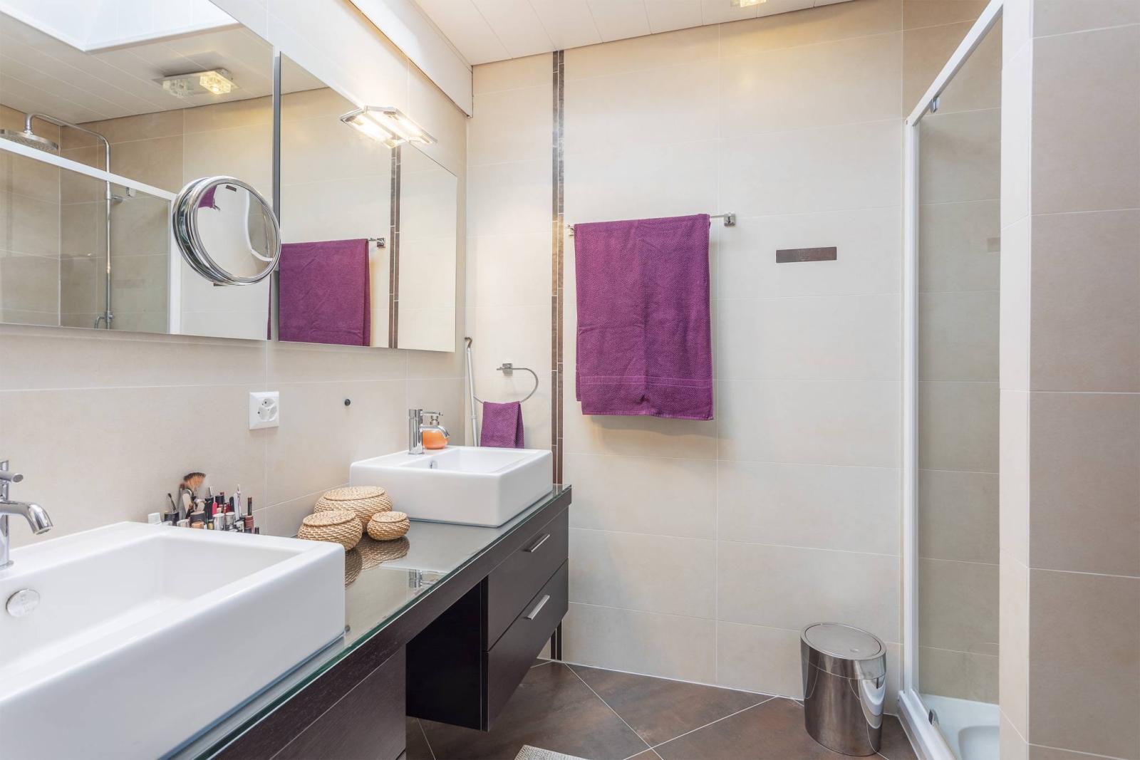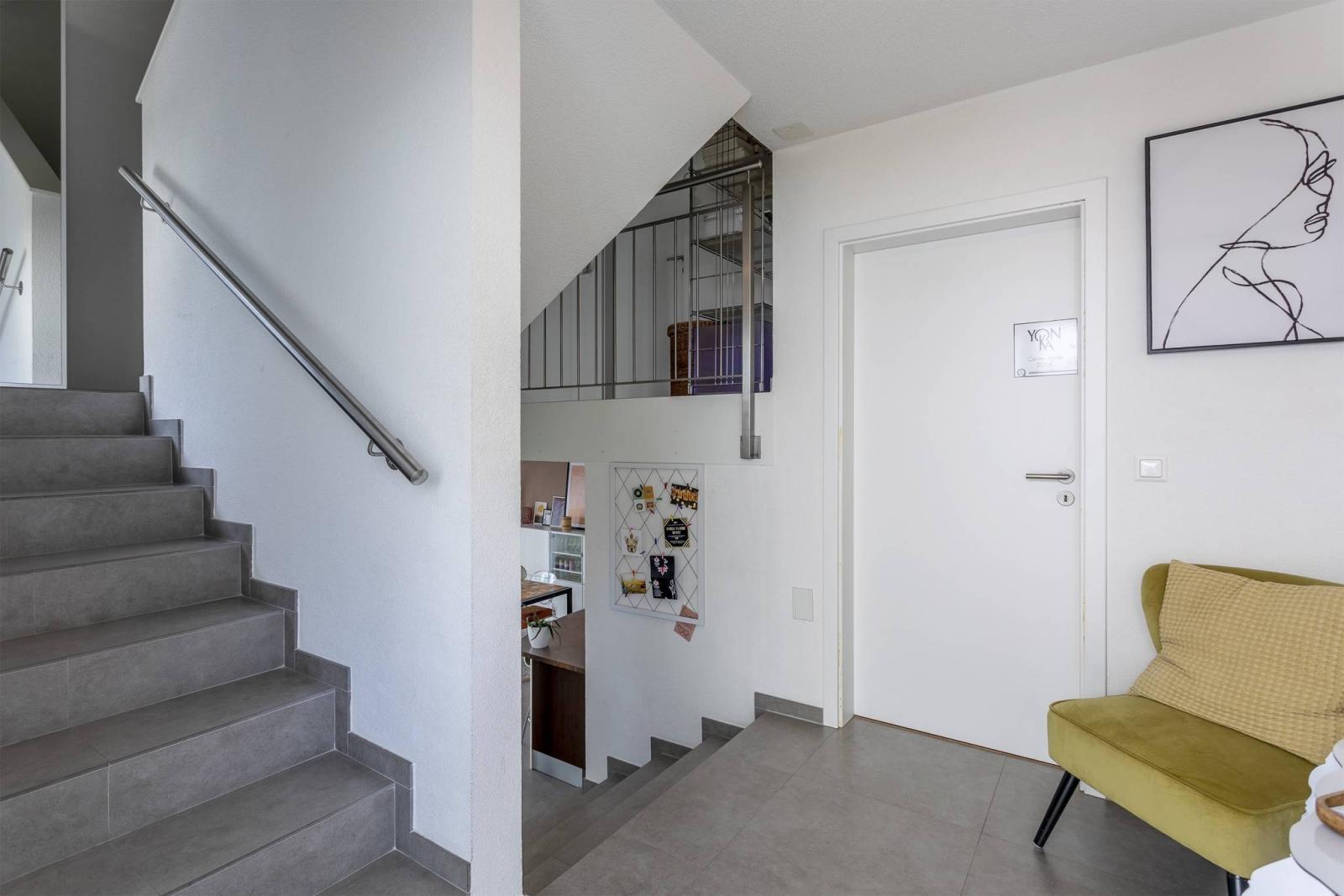 Es wurde 2009 erbaut und verfügt über eine Wohnfläche von ca. 160 m², eine große Terrasse und einen schönen privaten Garten. Es erstreckt sich über 4 Ebenen und setzt sich wie folgt zusammen: Erdgeschoss: voll ausgestattete offene Küche mit Essbereich und Wohnzimmer mit Holzofen, direktem Zugang zur Terrasse und zum privaten Garten. Obergeschoss: eine Eingangshalle mit Garderobe, ein großes Schlafzimmer von 14 m² und ein Duschbad mit WC. Boden: ein Verteilerraum, 2 Schlafzimmer (13 m² und 14 m²) und ein Badezimmer. Dachgeschoss: ein großes Hauptschlafzimmer (16 m²) mit angrenzendem Duschbad. Keller: ein großer Keller von 20 m², ein Waschraum von 11 m² und ein Technikraum ( eine Wärmepumpe und 2 Heizkessel, geteilt mit der benachbarten Doppelvilla)