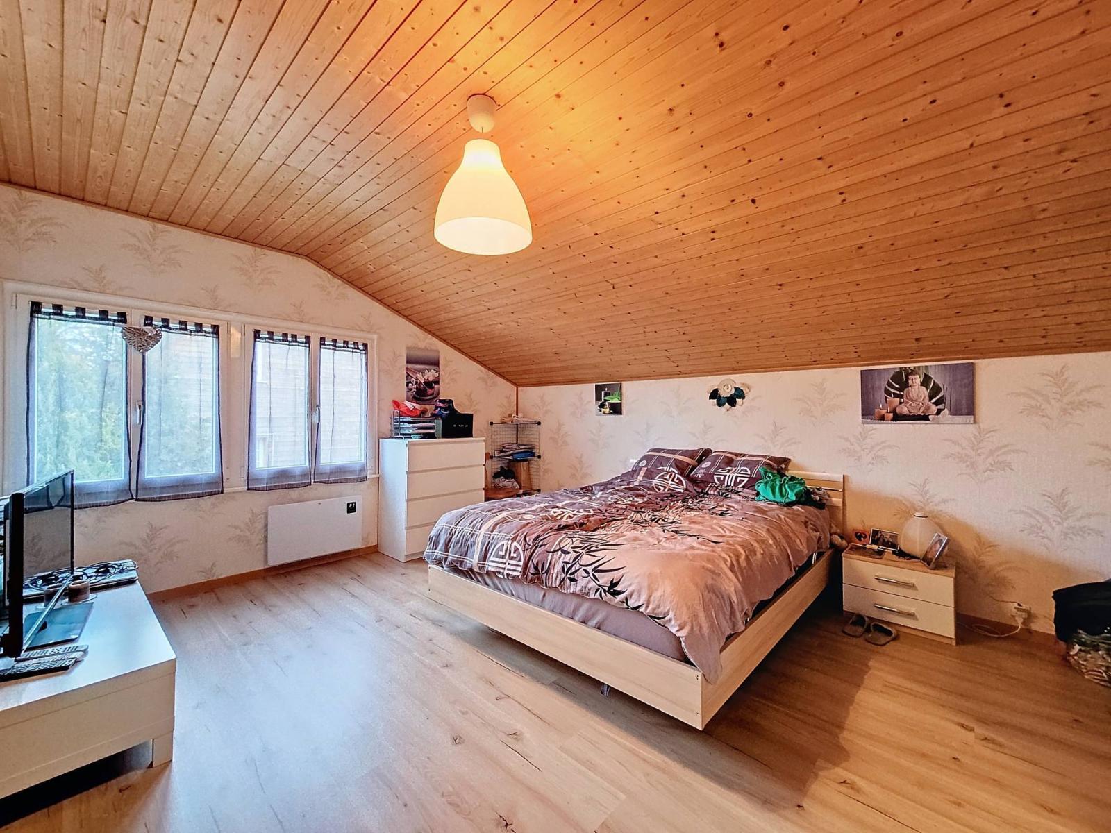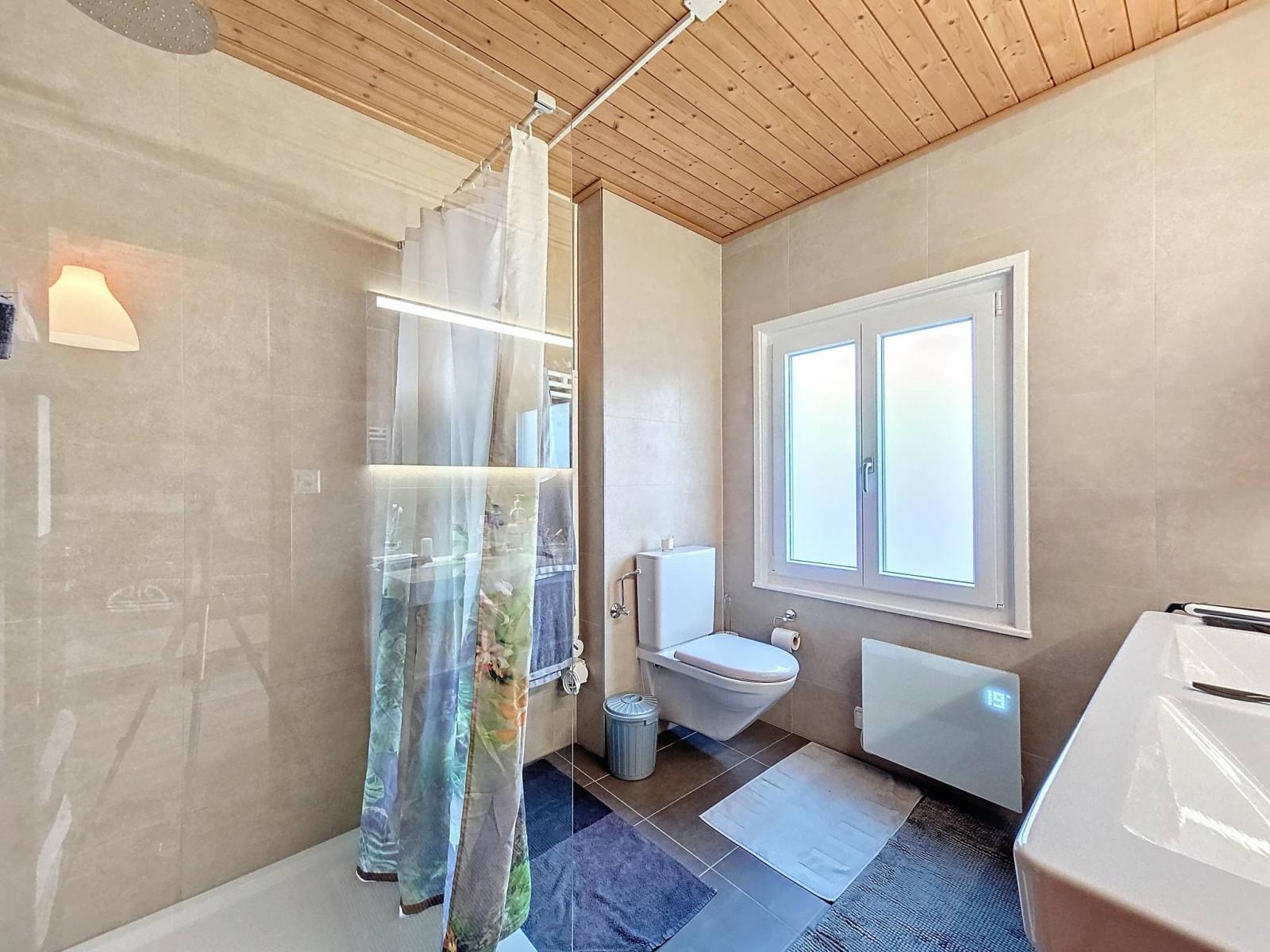 Das Innere dieser Villa bietet einen komfortablen und modernen Wohnraum. Die Zimmer sind funktional und hell. Der Holzofen im Wohnzimmer schafft eine warme und freundliche Atmosphäre für Winterabende mit der Familie.