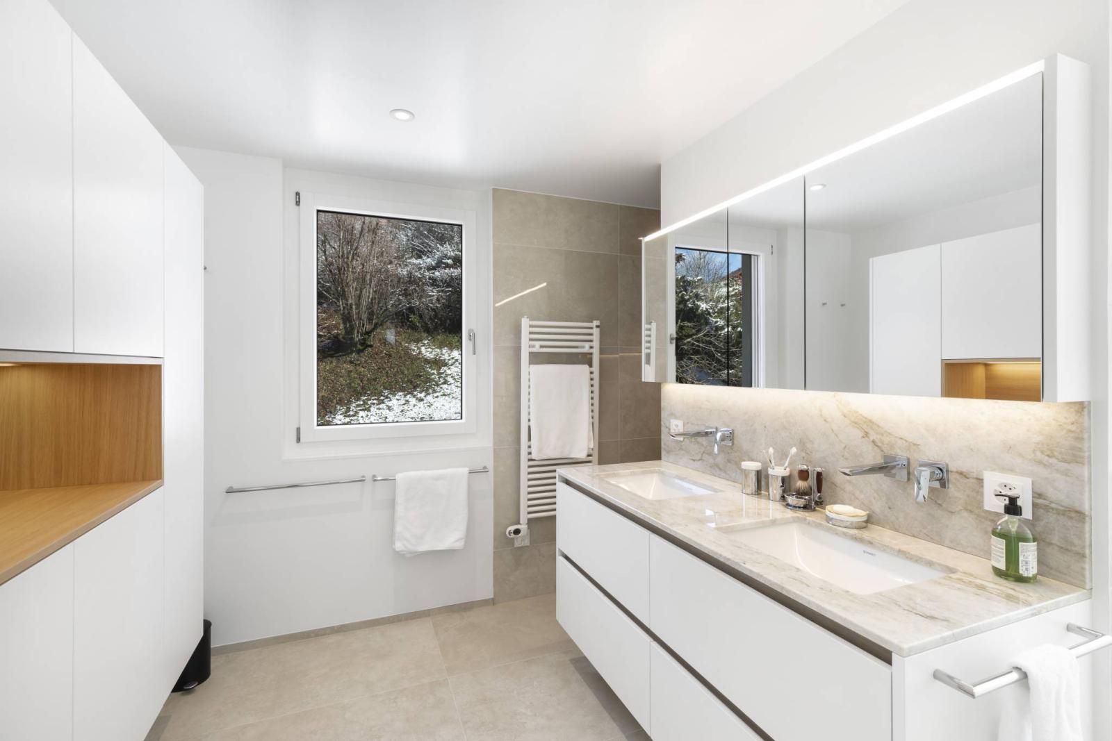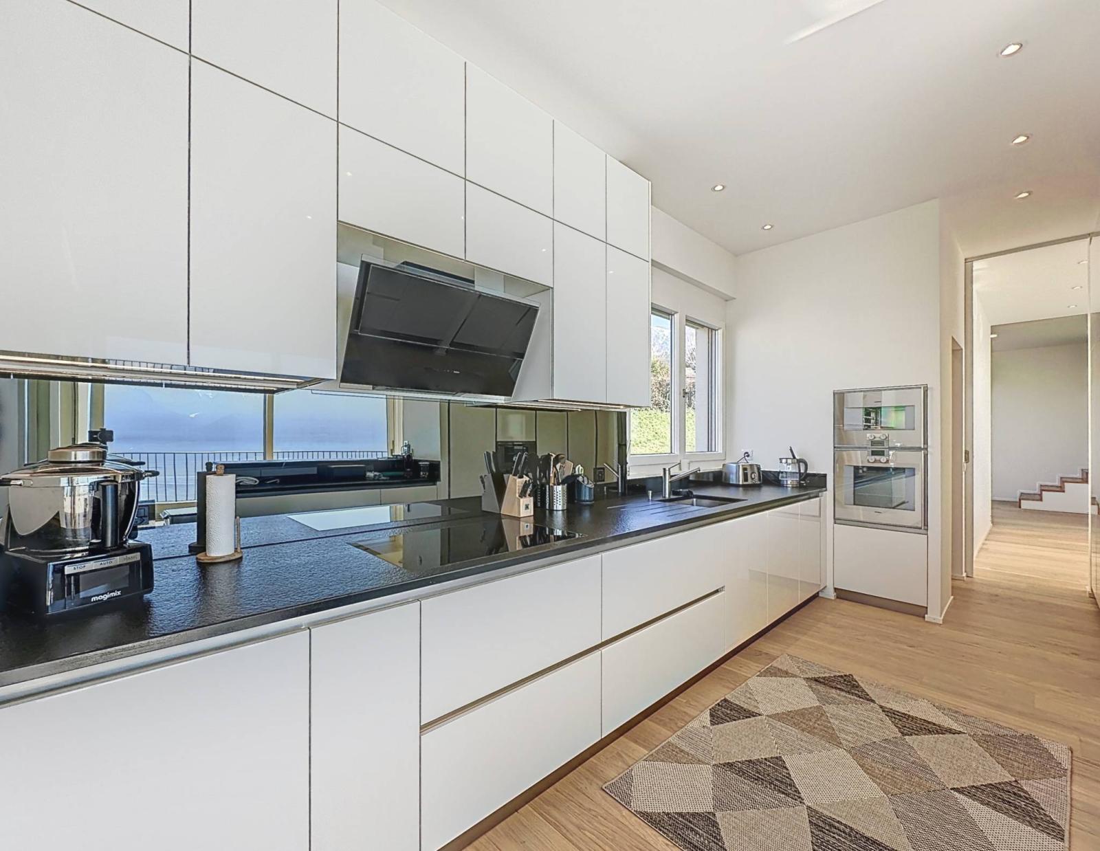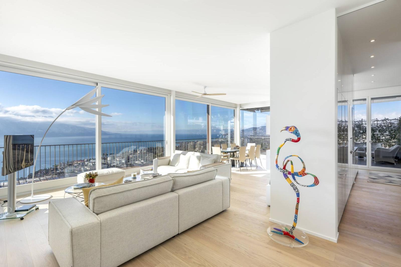 Es profitiert von einer außergewöhnlichen Aussicht auf den See und die Berge sowie von optimaler Beleuchtung dank seiner Ausrichtung und seinen großen Erkerfenstern, die mit UV-Folien ausgestattet wurden. Ruhe ist auch einer der großen Vorzüge dieser außergewöhnlichen Immobilie.