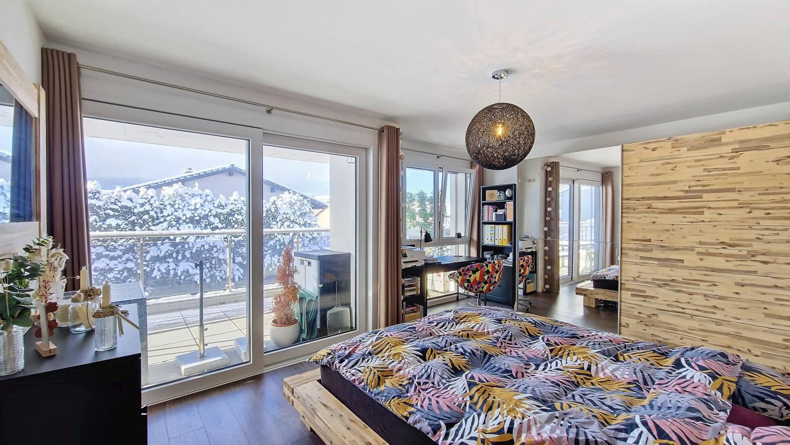 Entdecken Sie diese 3,5-Zimmer-Wohnung im 1. Stock eines Gebäudes mit 14 Wohnungen am Stadtrand von Bulle. Ideal gelegen in der Nähe von Schulen, Geschäften, öffentlichen Verkehrsmitteln und Autobahnanschluss, bietet es eine Wohnfläche von 79 m², mit einem Balkon von 28 m², wodurch sich die gewichtete Fläche auf 93 m² beläuft.