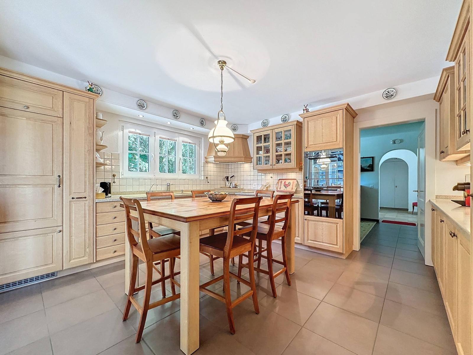 Harmonisch auf drei Ebenen verteilt, bietet es eine Nutzfläche von ca. 340 m² (davon ca. 250 m² Wohnfläche). Die großzügigen Räumlichkeiten laden zum Verweilen ein: geräumige Wohnzimmer mit Kamin, eine Familienküche mit Essbereich sowie eine überdachte, beheizte Veranda mit Kamin – ideal für alle Jahreszeiten. Ein separates Studio von ca. 24 m² mit angrenzendem Bad/WC rundet das Ensemble ab und eignet sich ideal für den Empfang von Familie oder Gästen.