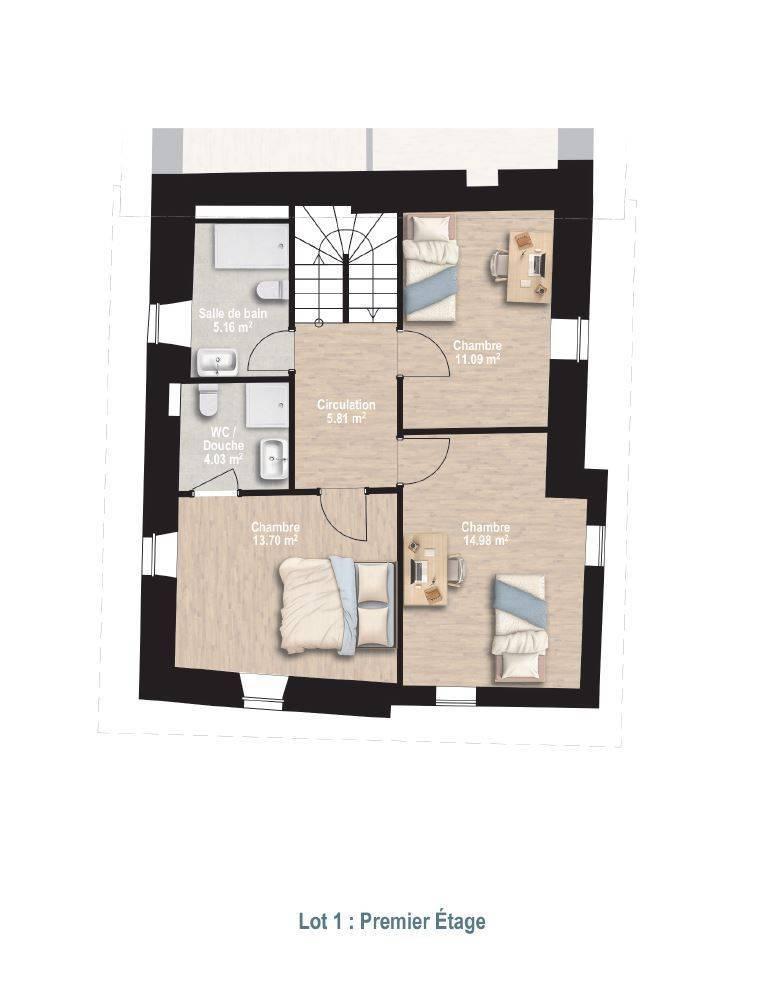 Die 3 Schlafzimmer haben gute Größen von ca. 11 m² (Kinderzimmer, Gästezimmer oder Büro) bis ca. 14,90 m². Darüber hinaus bietet ein Raum von mehr als 27 m² unter dem Dachboden Platz für ein 4. Schlafzimmer oder einen Büro-/Freizeitraum.
