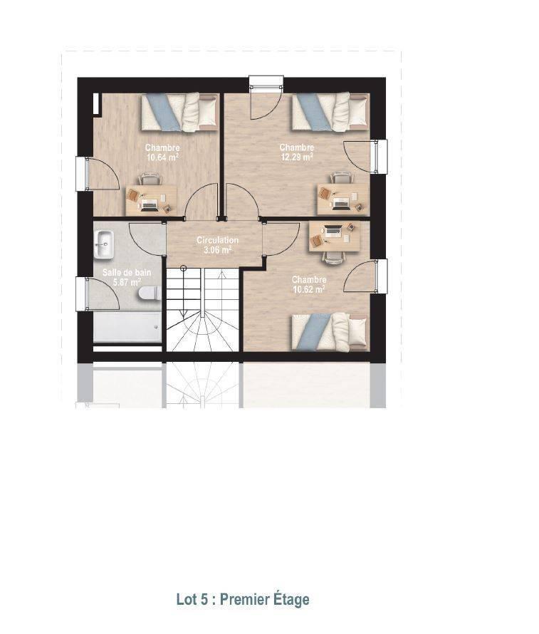 *VILLA 5 = Profitieren Sie von der Giebelkonstruktion (Öffnungen an drei Seiten für mehr Licht) mit 168,42 m² Nutzfläche, die effizient auf 3 Ebenen + Keller verteilt ist. Die Fertigstellung liegt im Ermessen des Mieters (siehe: Baubeschreibung).