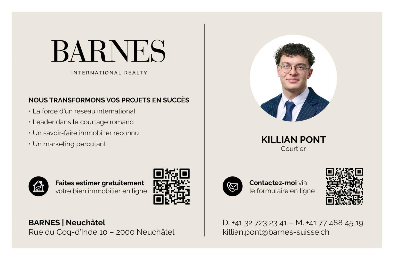 Willkommen in dieser prächtigen modernen 5,5-Zimmer-Wohnung im oberen Erdgeschoss eines eleganten Gebäudes aus dem Jahr 2022, das nur drei Wohnungen umfasst und in einer ruhigen und beliebten Gegend von Corcelles-Cormondrèche liegt. Mit einer Wohnfläche von 155 m² bietet diese Residenz großzügigen und raffinierten Raum für Ihren Komfort und Lebensstil.