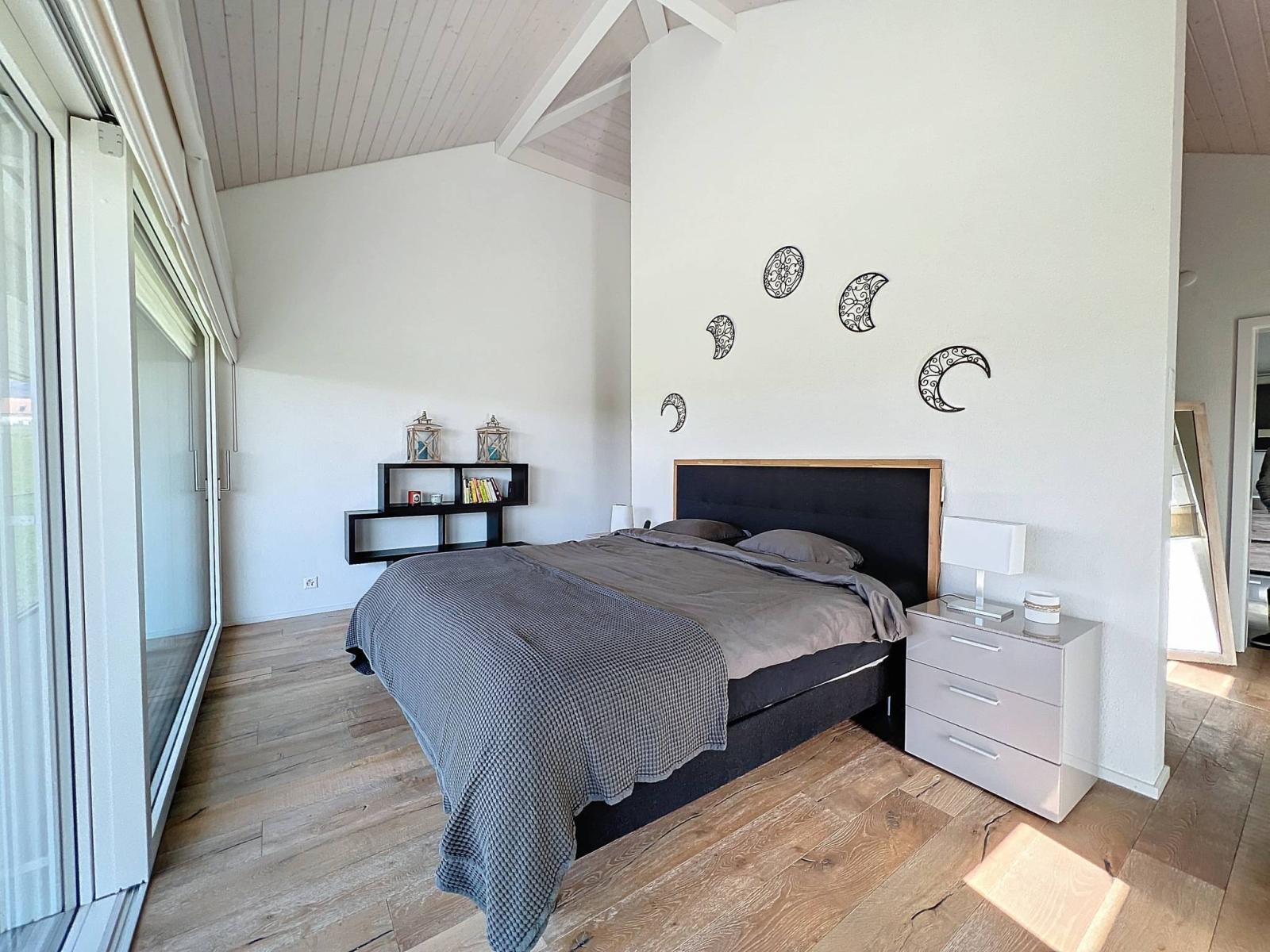Dank der großen Erkerfenster, die Zugang zur Terrasse und zum Garten bieten, ist das Ganze lichtdurchflutet. Ein Schlafzimmer, das derzeit in ein Büro umgewandelt wird, vervollständigt diese Ebene.