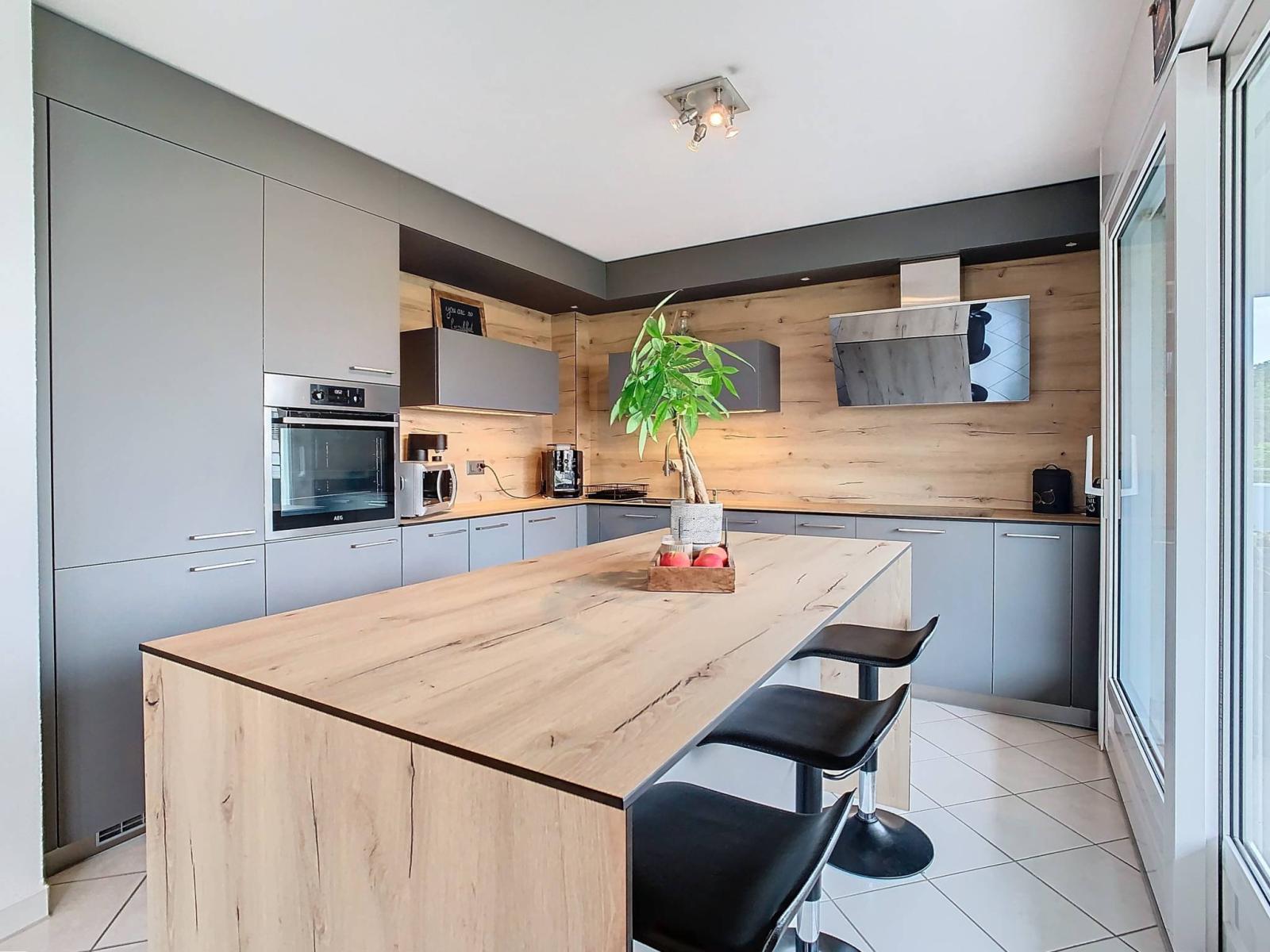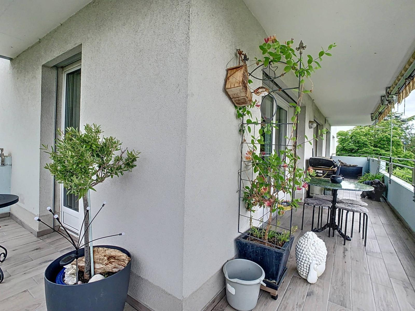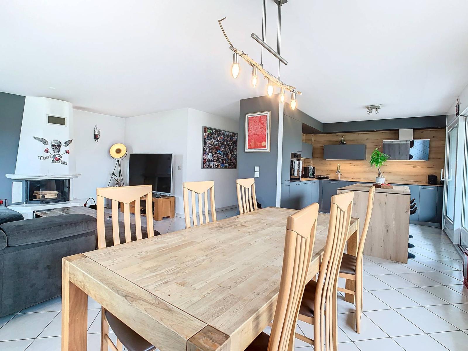 Der Tagesbereich verfügt über ein großes Wohnzimmer mit Kamin und Zugang zum geschützten Balkon von 29 m², eine schöne und große Küche von guter Qualität mit kürzlich renovierter Mittelinsel.