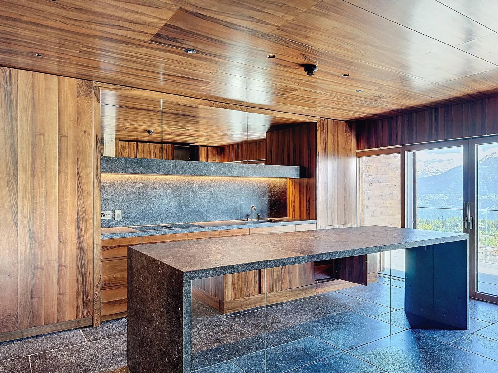 SELTEN UND AUSSERGEWÖHNLICH – dieses prächtige Duplex-Penthouse, komplett möbliert und mit sehr hochwertigen Materialien ausgestattet, profitiert von einem außergewöhnlichen Blick auf das Resort und die Alpen.