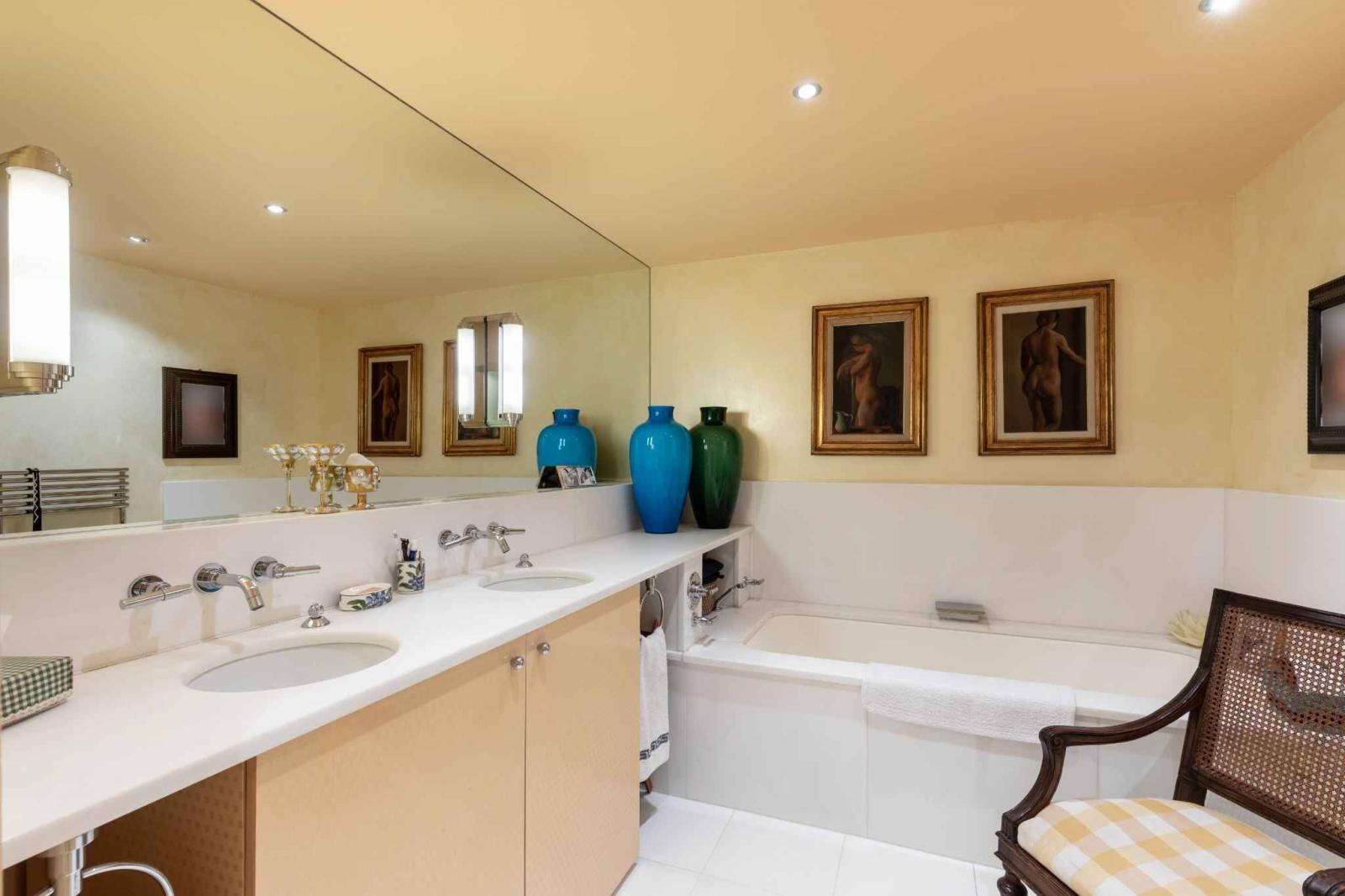 Der Schlafbereich bietet 4 schöne Schlafzimmer mit jeweils eigenem Bad. Eines der Schlafzimmer ist derzeit als Büro eingerichtet.
