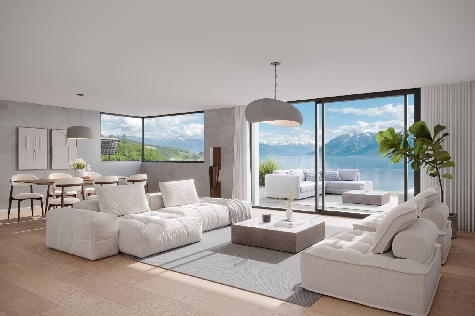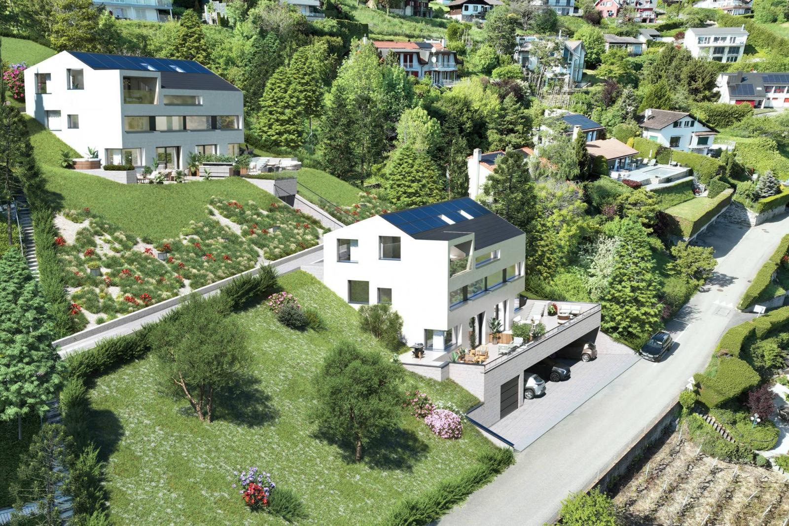 Projektstandort: Terra Panoramica liegt im Herzen von Grandvaux, einer Weinbaustadt, die zum UNESCO-Weltkulturerbe gehört, mit atemberaubender Aussicht auf den Genfersee und die Alpen.