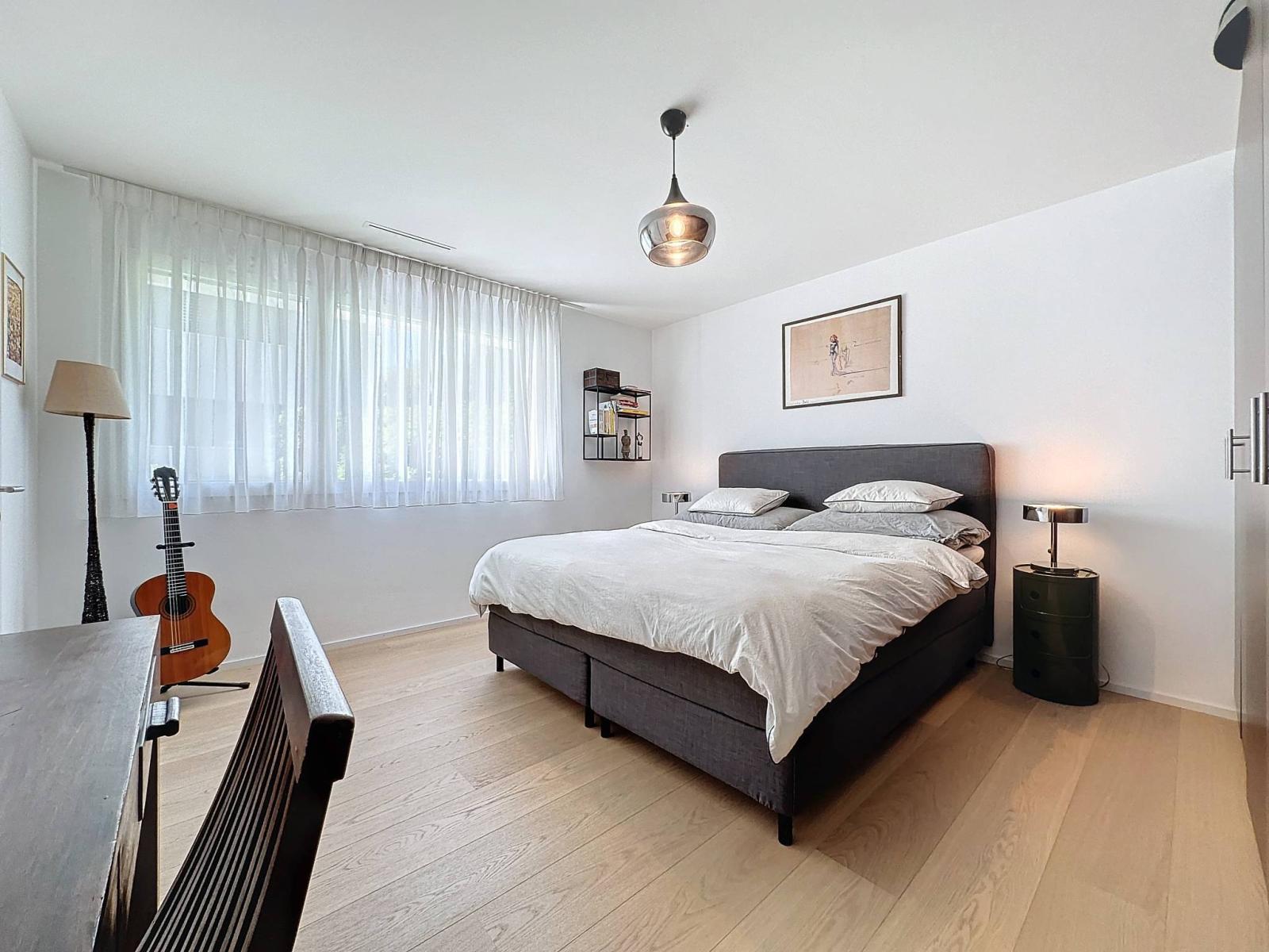 Diese renovierte Wohnung befindet sich in einer modernen MINERGIE-zertifizierten Eigentumswohnung aus dem Jahr 2011. Mit einer gewichteten Fläche von 122 m² ist sie hell und verfügt über schöne Volumen, hochwertige Oberflächen und eine optimale Ausrichtung.